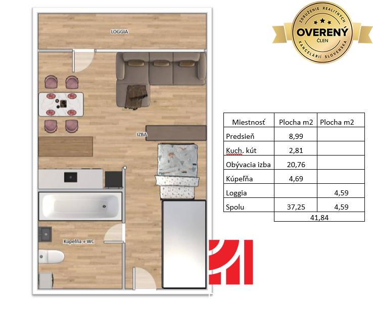 * Výmera: byt 37,25 m²