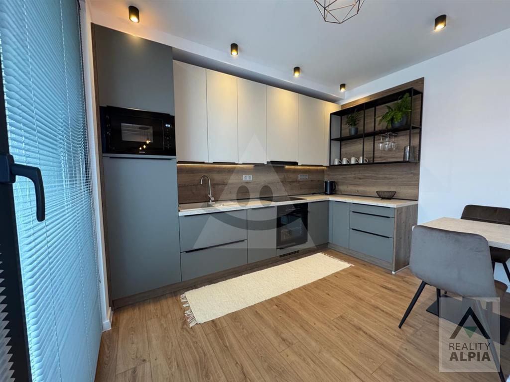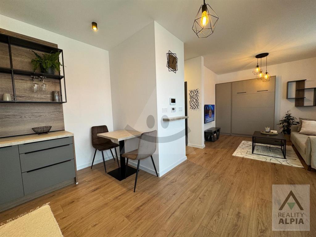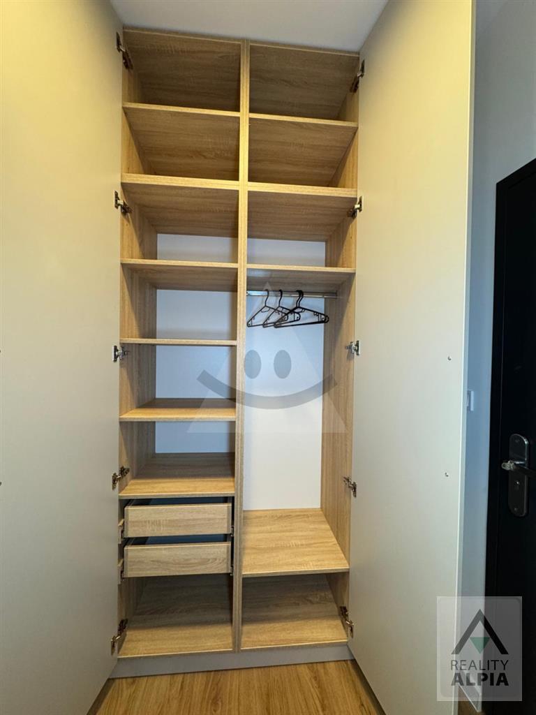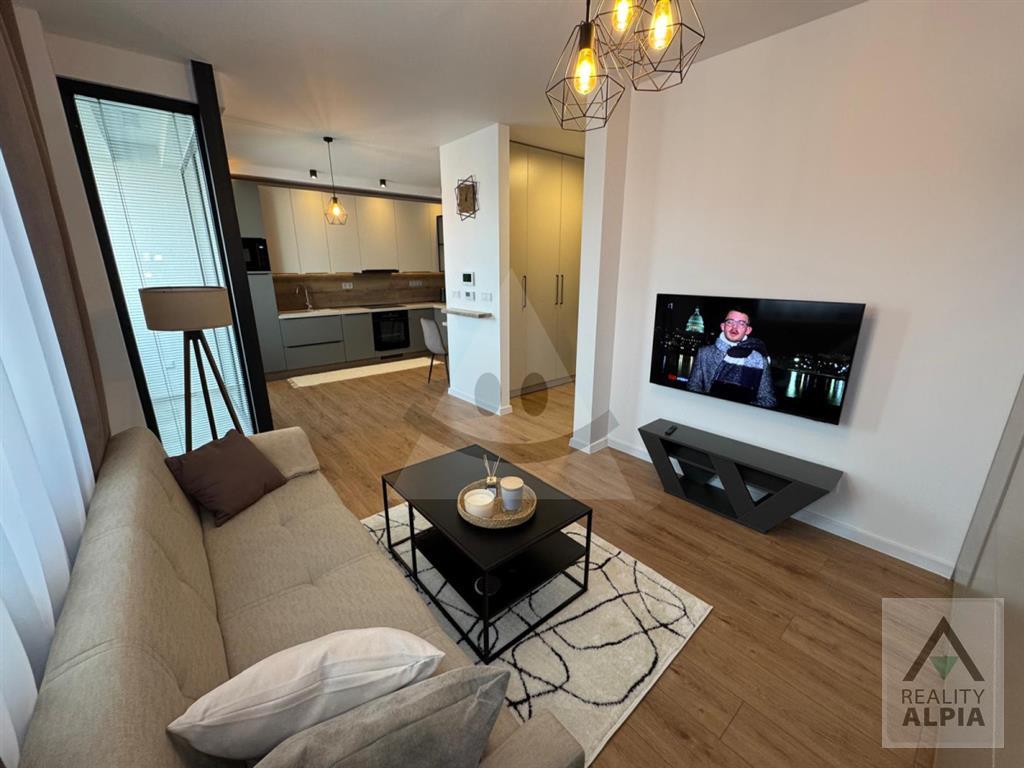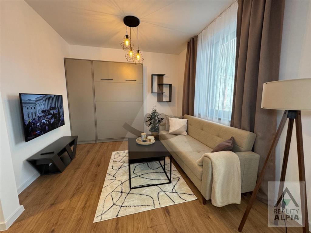 Pre náročného klienta ponúkame na prenájom kompletne a luxusne zariadeného 1 izb. byt v centre mesta. Má podlahové teplovodné kúrenie, videovrátnika, výťah a loggiu. Byt sa nachádza na 3 poschodí v novopostavenej nadstavbe, vybavený je dostatkom úložného priestoru, sklápacou posteľou, rozkladacím gaučom, kuchynskou linkou vybavenou umývačkou, varnou doskou, elektrickou rúrou, mikrovlnnou rúrou, digestorom a jedálenským stolom, kúpeľňa je vybavená práčkou so sušičkou.K bytu patrí veľká pivničká kobka.