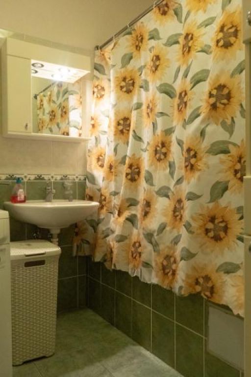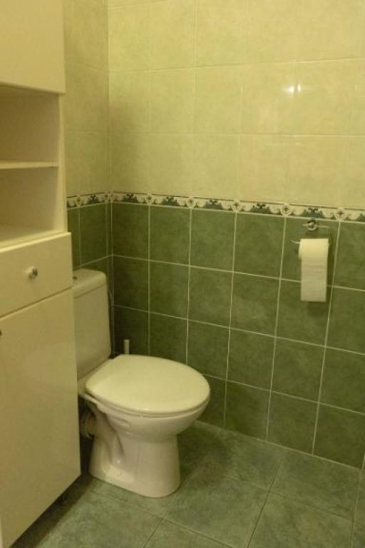 ✅ kúpeľňa, kúpeľňový nábytok a obmurovaná plastová vaňa (toaleta je tiež súčasťou kúpeľne) – kúpeľňa má zelený keramický obklad;