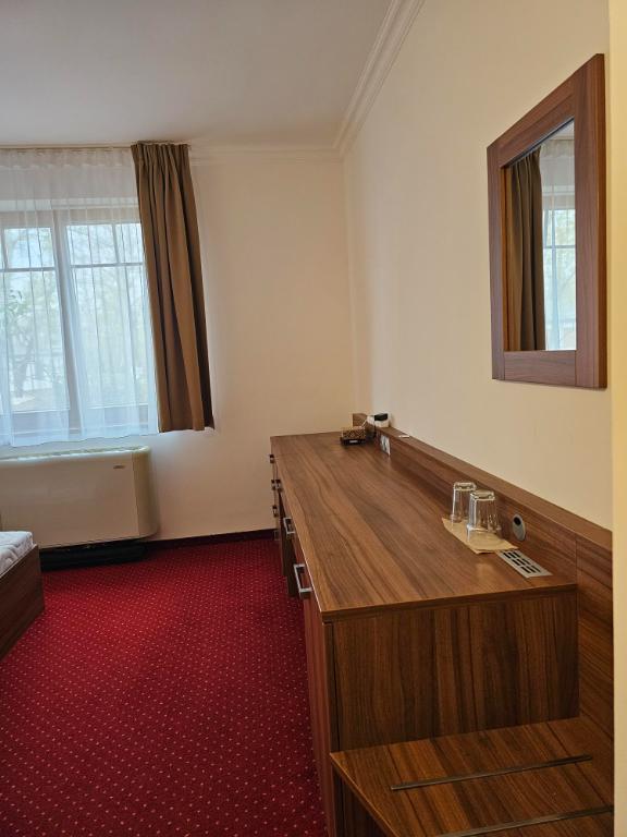Ponúkame na dlhodobý prenájom príjemný 1-izbový nebytový priestor/apartmán, v Petržalke na Tematínskej ul.7, v priestoroch bývalého hotela Grand Hotel Pressburg Bratislava, v krásnom tichom prírodnom prostredí na brehu jazera Draždiak. Posch. prízemie, rozloha obytnej plochy 23,65 m2, čiastočne zariadený (vstavaný šatník, dvojposteľ, stôl, stolička, vstavaná hotelová minichladnička) kompletne zariadená kúpeľňa s integrovaným WC, bidetom a vaňou. Možnosť využitia kuchynky a práčovne v spoločných priestoroch na prízemí hotela, taktiež je možnosť inštalácie vlastných spotrebičov v apartmáne (práčka, chladnička, mikrovlnka). Vhodný pre pár alebo 1 osobu, bez domácich zvierat.