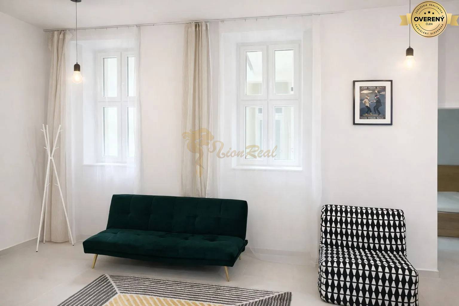 Byt pozostáva z priestrannej obývačky prepojenej s kuchyňou, samostatnej spálne a kúpeľne s toaletou a je orientovaný výhradne do uzavretého vnútrobloku, vďaka čomu ponúka výnimočné ticho a súkromie, ktoré je v centre mesta skôr raritou než štandardom.