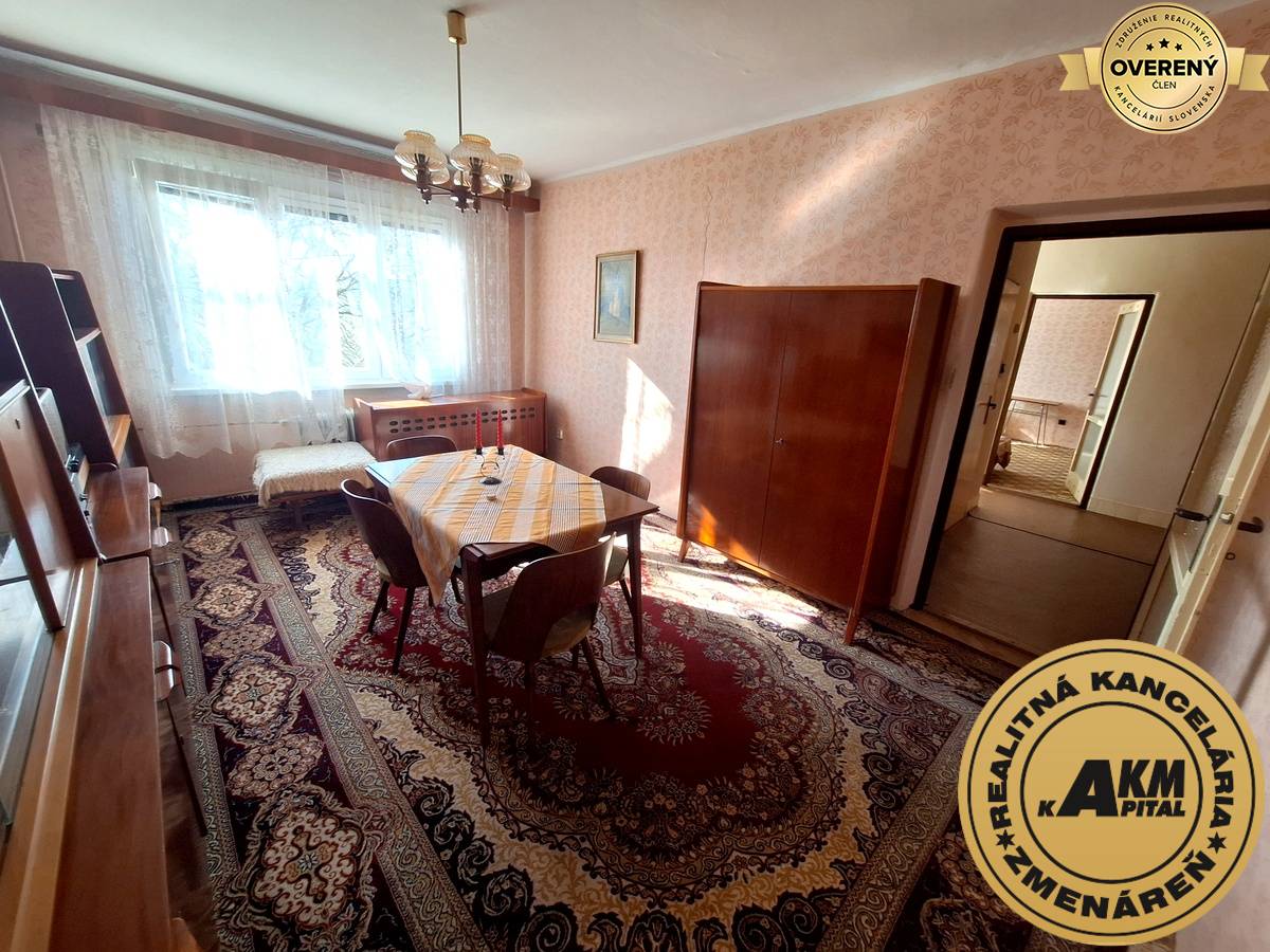 • Dispozícia: Vstupná chodba, kúpeľňa, samostatné WC, kuchyňa a 2 nepriechodné izby - súkromie pre každého člena domácnosti.