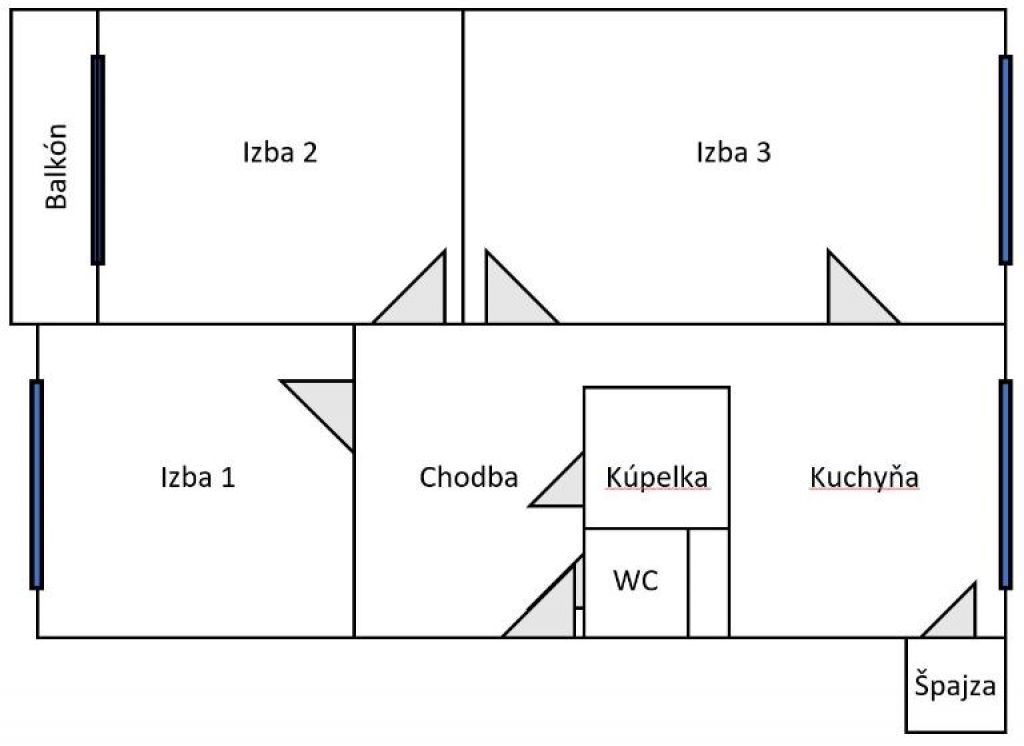 - Druh: 3 izbový byt