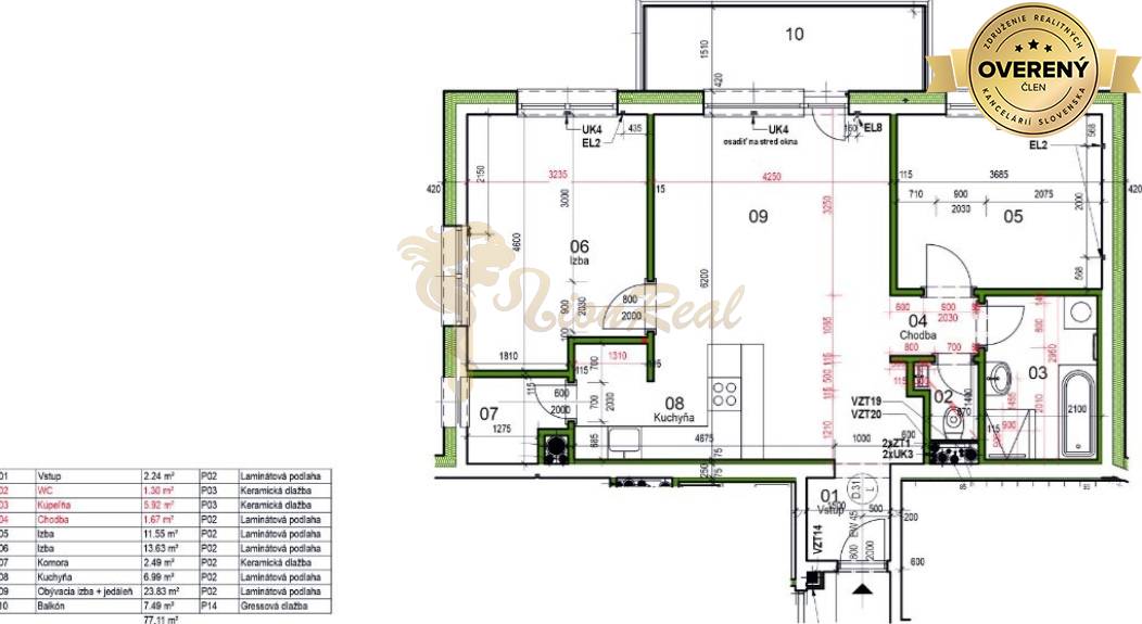 Výmera bytu: 69,63 m² + balkón 7,49 m² = Celková plocha : 77,12 m2, nachádza sa na 2 p. z 12 (v dome sú 2 výťahy).