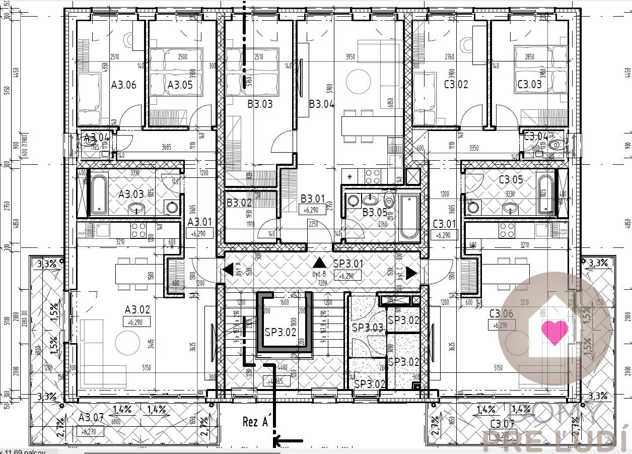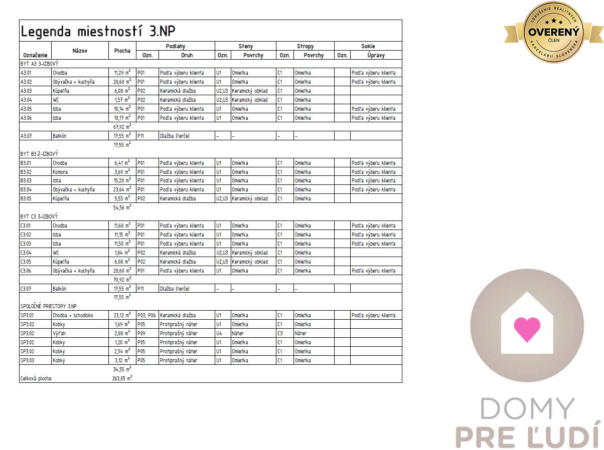 - Druh: 3 izbový byt
