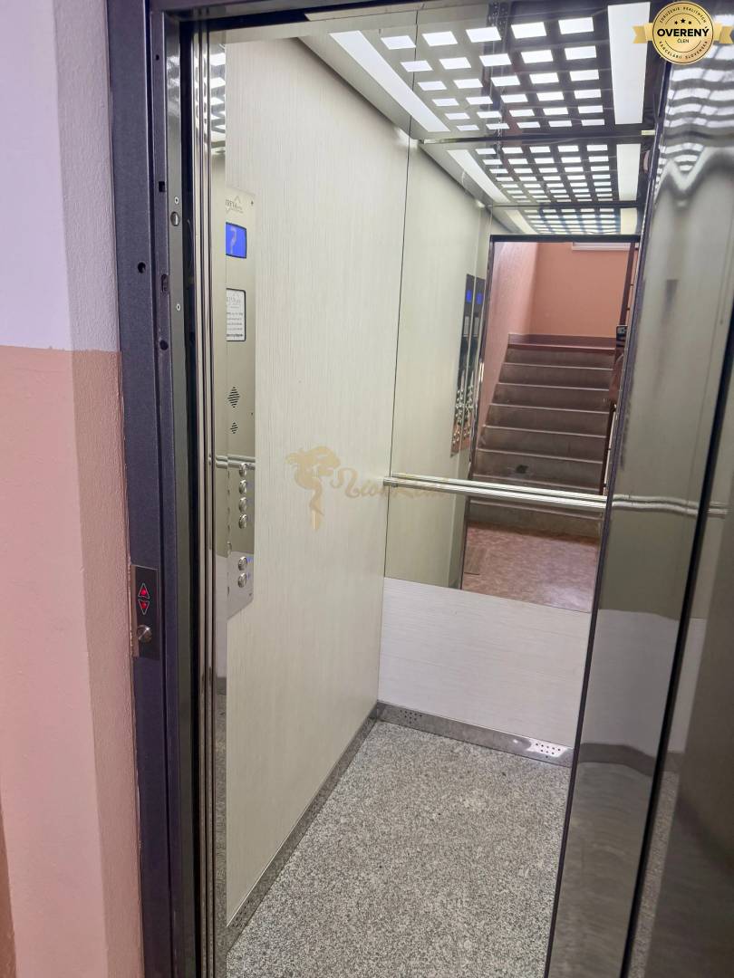 Celková výmera bytu 82 m2 + lodžia + pivnica, nachádza sa na 7 p./8 panelového domu s výťahom. Na prízemí je spoločná miestnosť na odkladanie bicyklov a kočíkov .