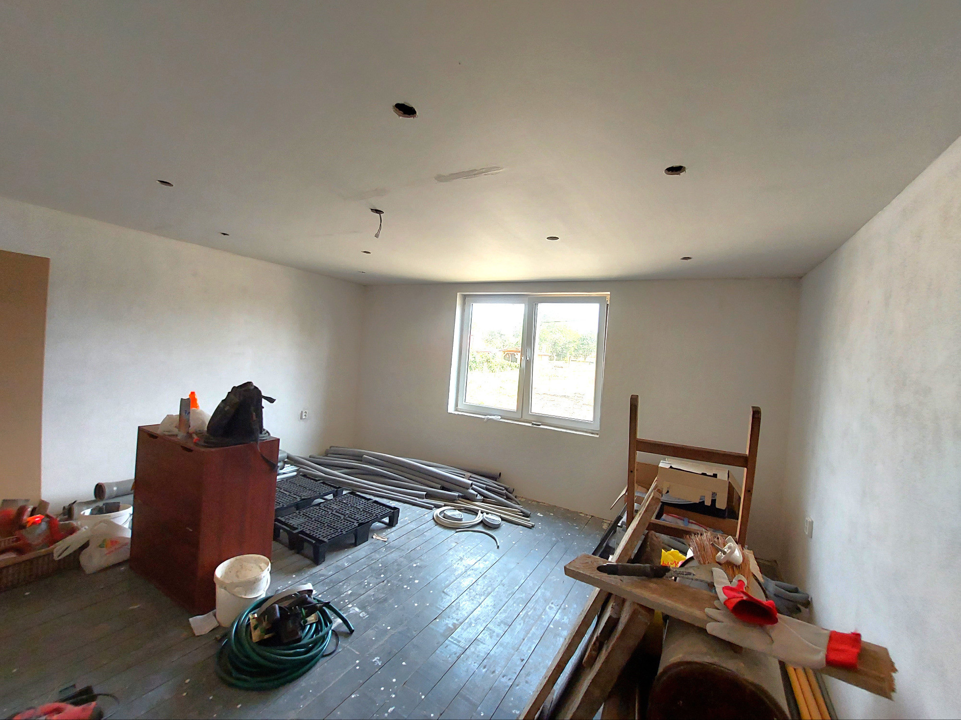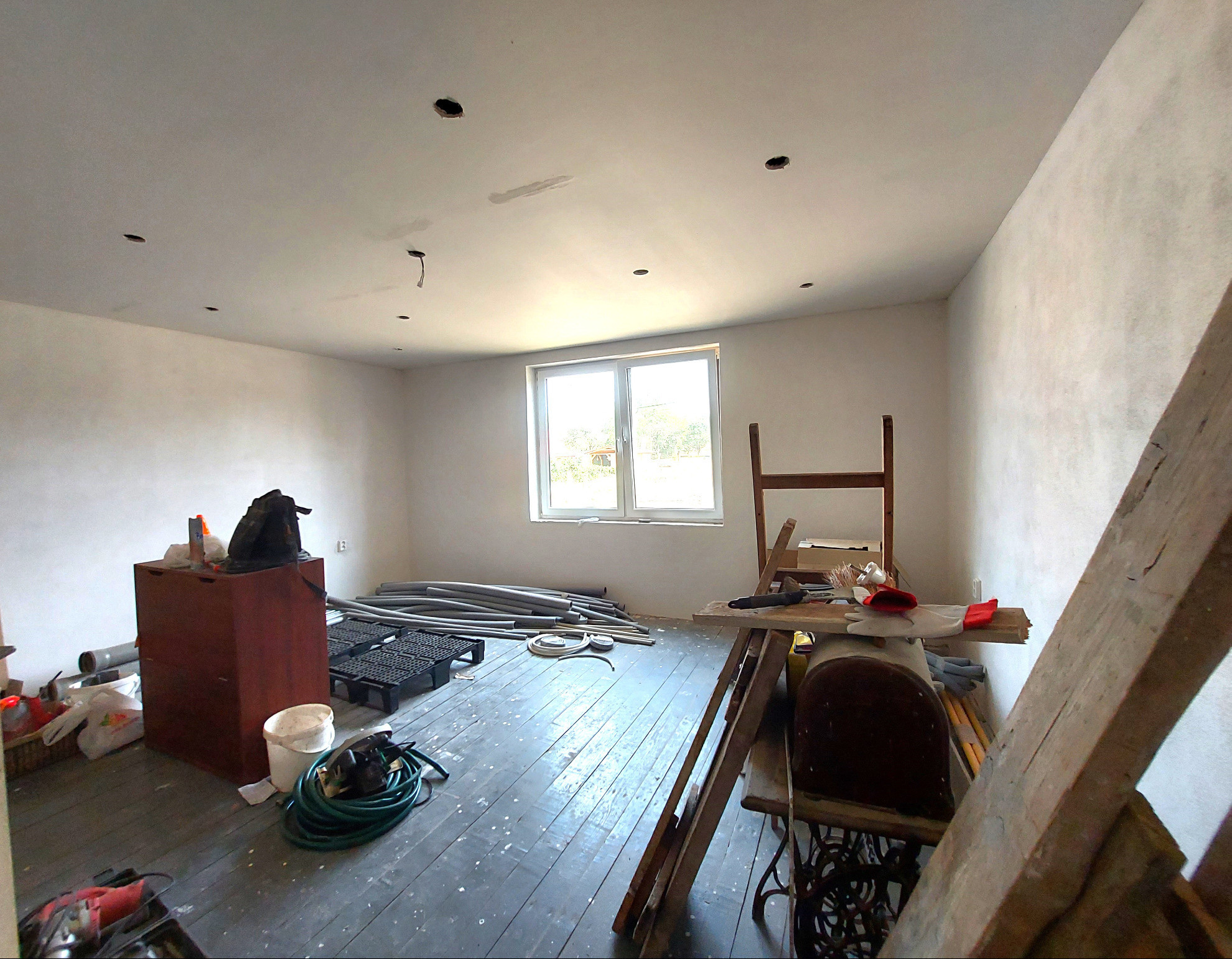 2. NP - chodba, 3 priestranné izby a kúpeľňa. Zo schodiska východ z domu na plánovanú terasu. Na tomto podlaží prebehla rekonštukcia elektrických a vodovodných rozvodov.