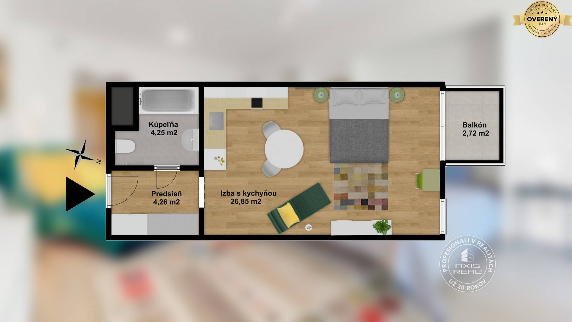 360° VIRTUÁLNU PREHLIADKU A 3D PÔDORYS NEHNUTEĽNOSTI NÁJDETE NA: https://info.axisreal.sk/ACY