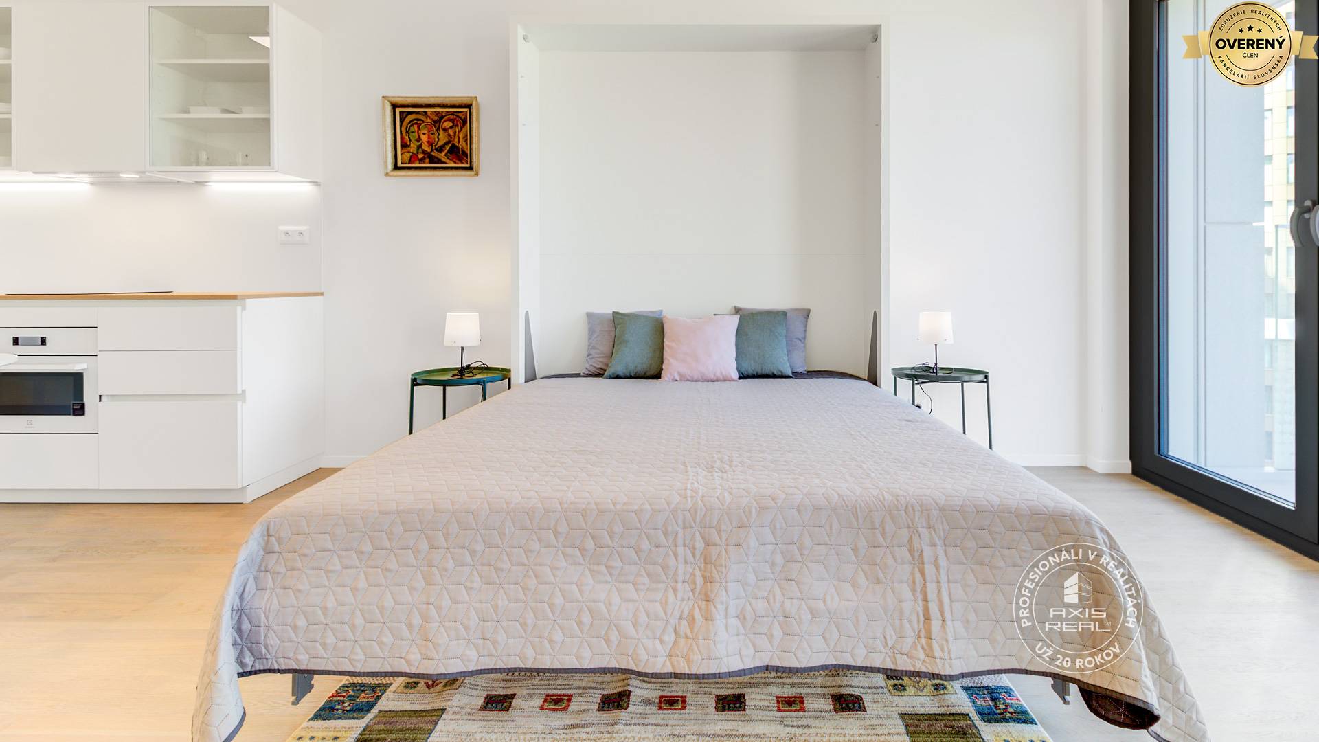 NOVOSTAVBA bola skolaudovaná v roku 2025. V byte sú elegantné laminátové podlahy v kombinácii so ŠTÝLOVOU dlažbou, kvalitné keramické obklady, sanita značky DURAVIT, kúpeľňové vodovodné batérie HANSGROHE a bezpečnostné vchodové dvere. VEĽKÉ HLINÍKOVÉ FRANCÚZSKE OKNÁ sú doplnené o EXTERIÉROVÉ ŽALÚZIE. Byt sa prenajíma kompletne zariadený MODERNÝM NÁBYTKOM. Praktickú MANŽELSKÚ POSTEĽ je možné za pár sekúnd ZAKLOPIŤ, čím počas dňa nezaberá priestor a zvyšuje tak komfort bývania.