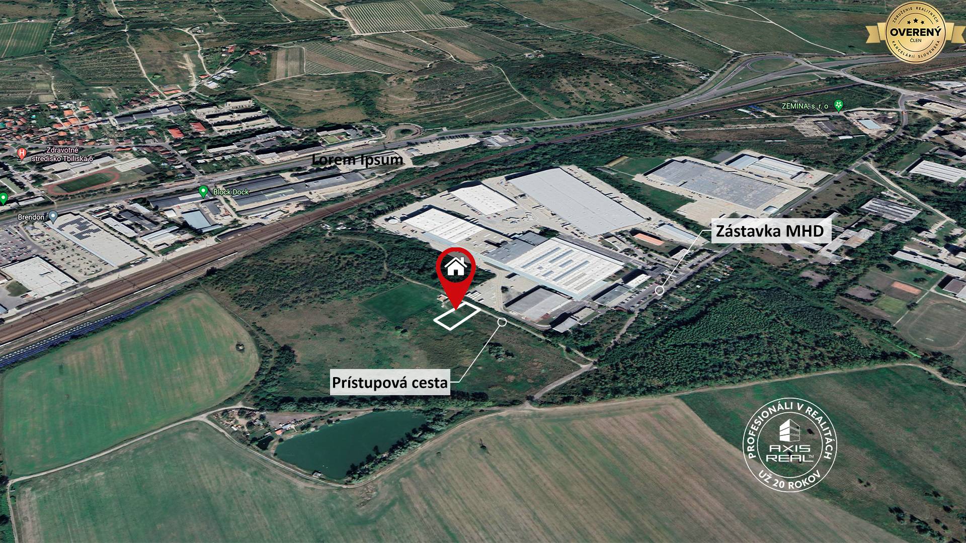 Rovinatý pozemok sa nachádza na okraji už existujúcej priemyselnej zóny, kde sú SKLADOVÉ, VÝROBÉ a DISTRIBUČNÉ PRIESTORY (veľkoobchod IKAR, DHL Freight, Jovimer SK,...). V pešej dostupnosti je autobusová zastávka, čo umožňuje pohodlnú dopravu z a do lokality. Neďaleko je Rybník Rača.