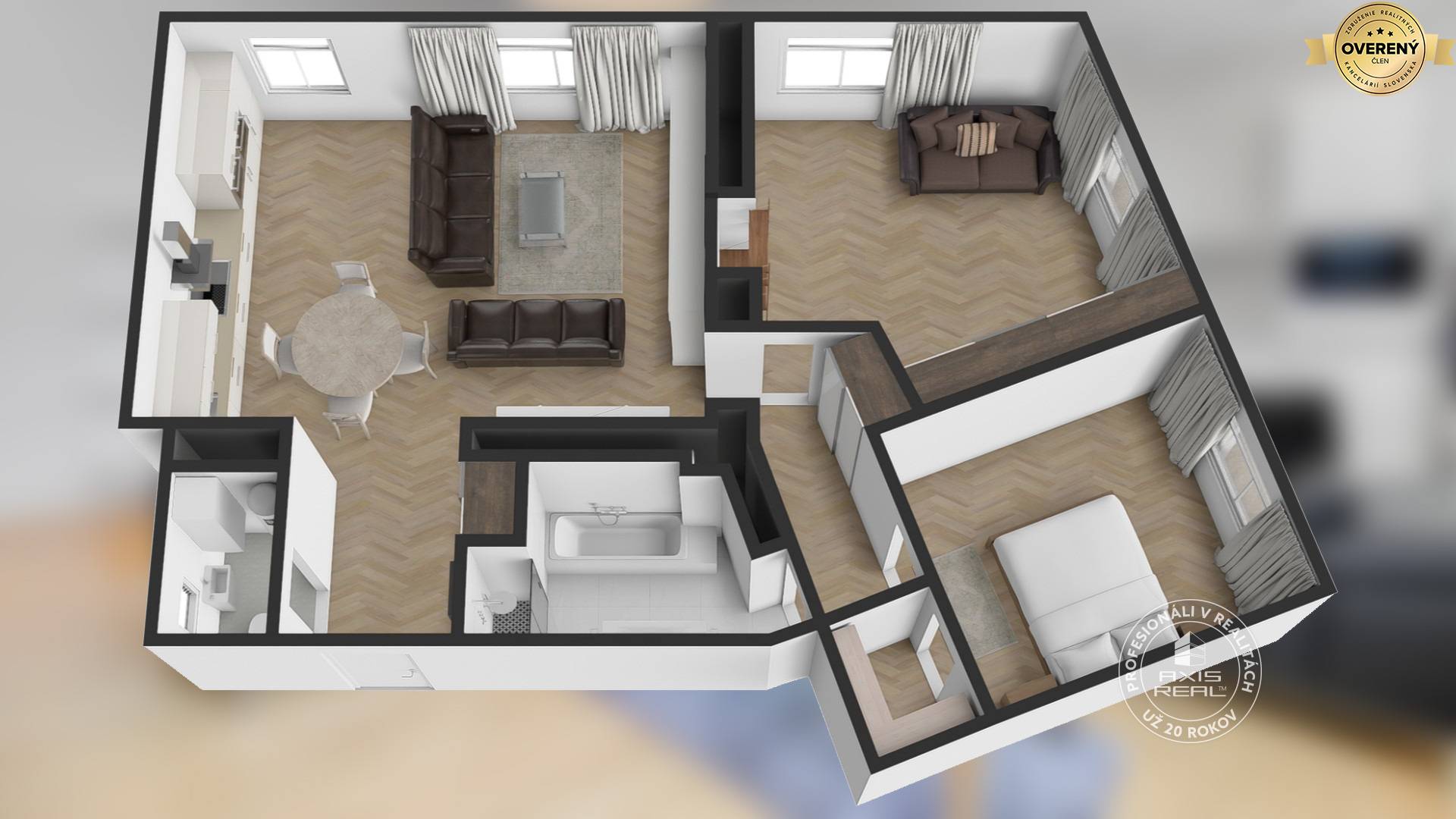 360° VIRTUÁLNU PREHLIADKU A 3D PÔDORYS NEHNUTEĽNOSTI NÁJDETE NA: https://info.axisreal.sk/ADB