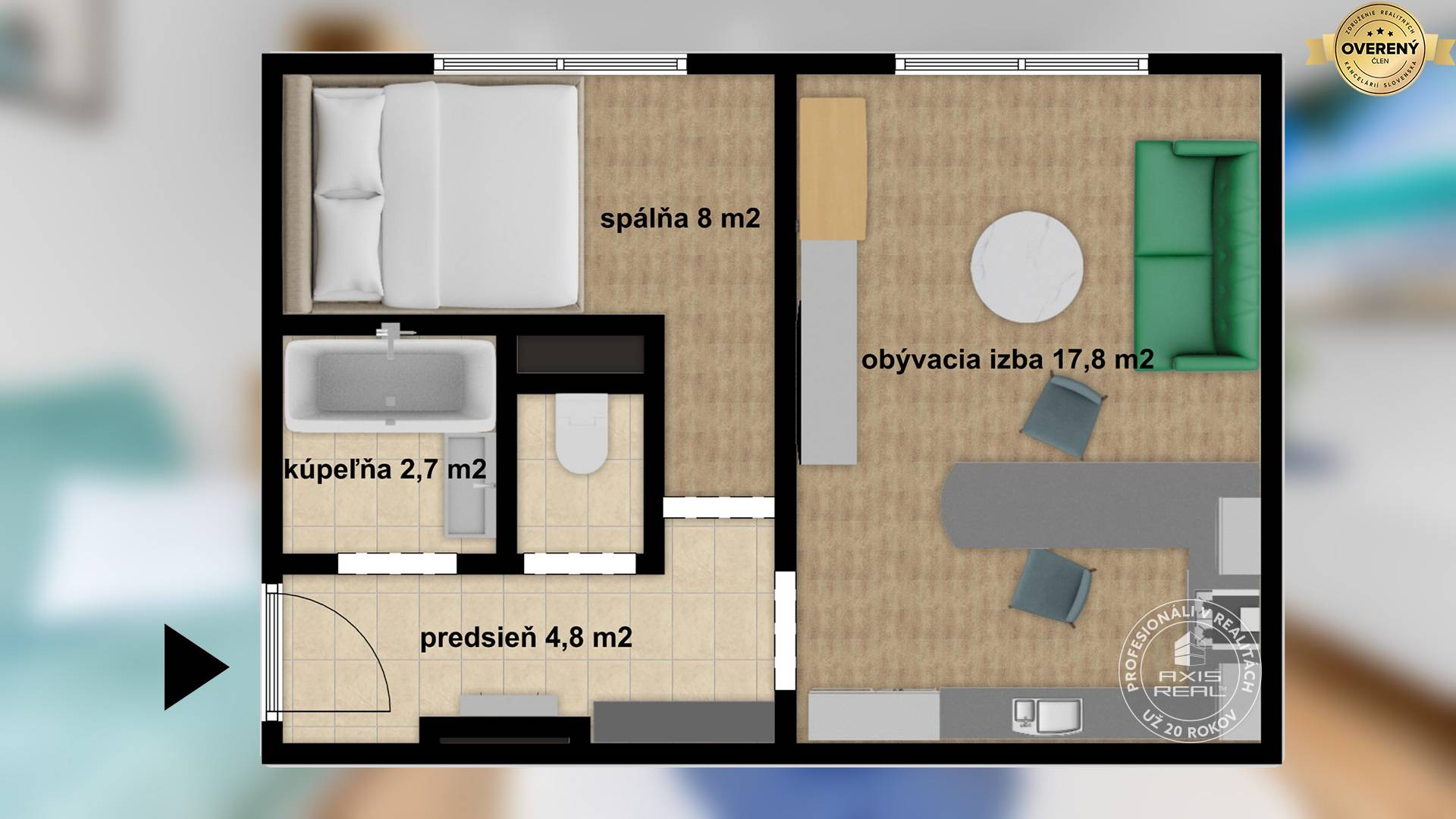 360° VIRTUÁLNU PREHLIADKU A 3D PÔDORYS NEHNUTEĽNOSTI NÁJDETE NA: https://info.axisreal.sk/ACX