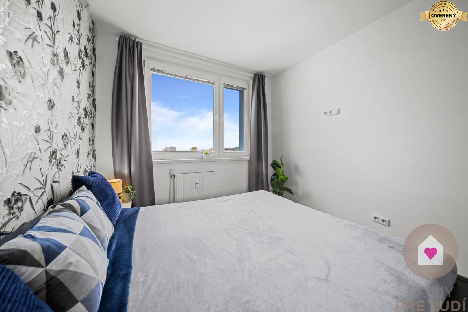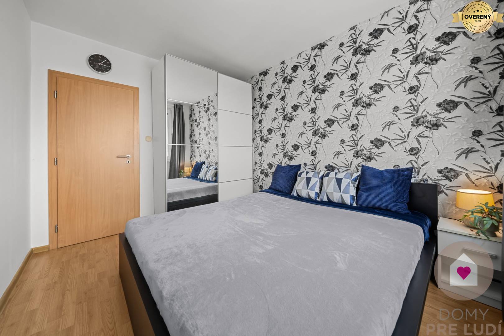 - oddelená spálňa s manželskou posteľou, šatníkovou skriňou a nočným stolíkom - 9,97 m2