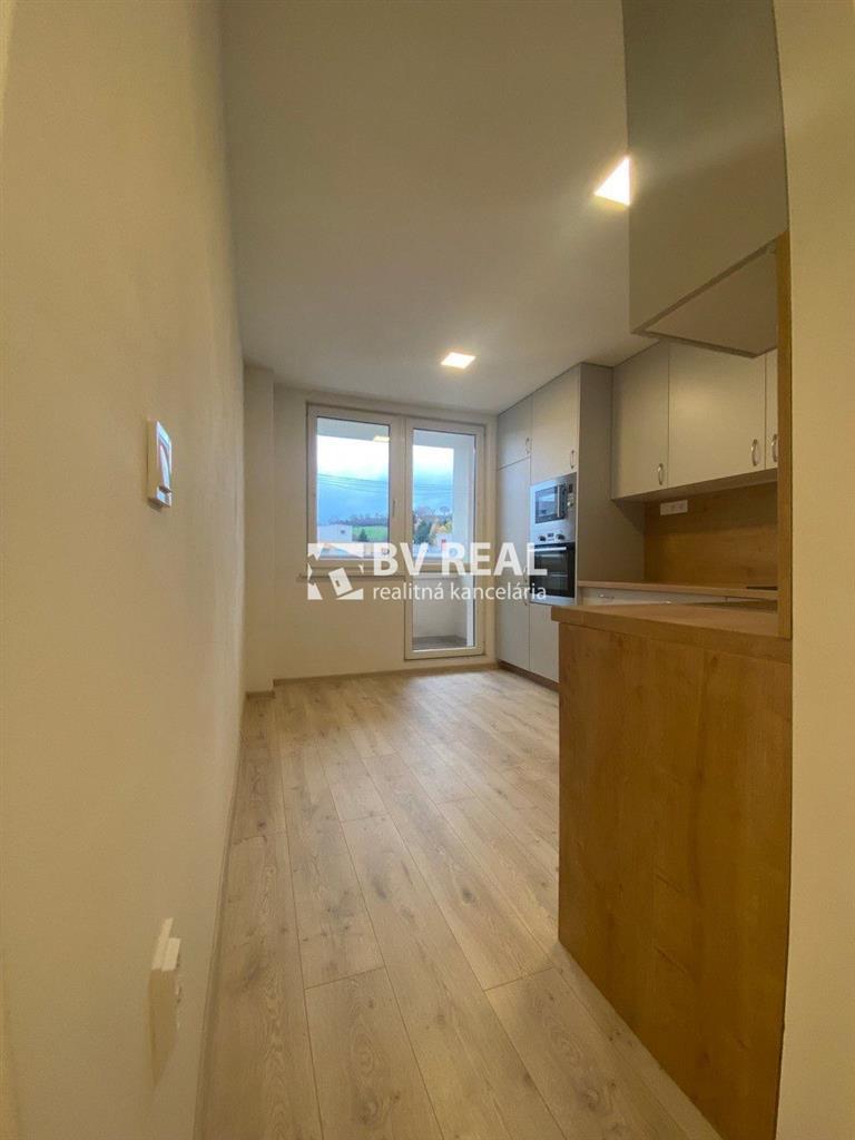 V kuchyni nová na mieru urobená rohová kuchynská linka s dresom, so zabudovateľnou varnou doskou a zabudovateľnou rúrou a mikrovlnkou, digestor, obklad, plávajúca podlaha, znižovaný strop.