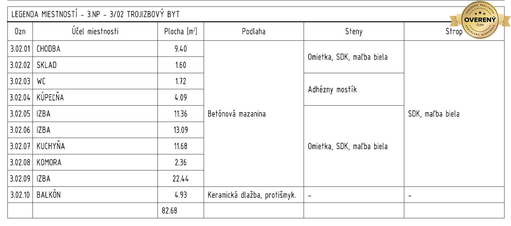 - Druh: 3 izbový byt