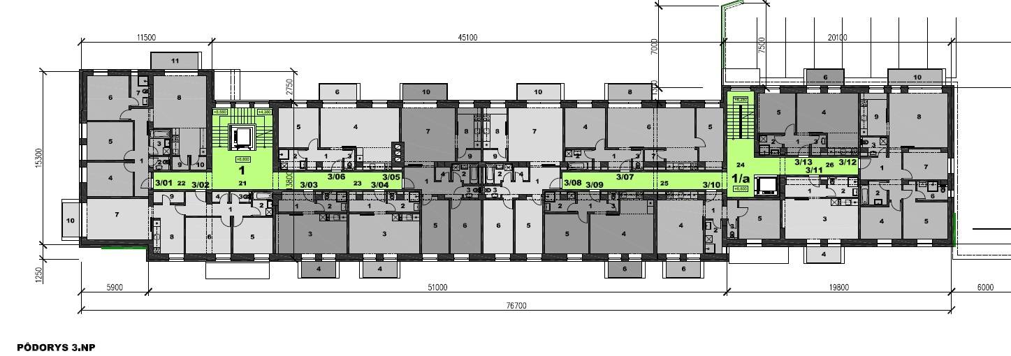 3-izbový byt na 3. poschodí ktorý pozostáva zo vstupnej chodby, kuchyne, troch izieb, kúpeľne, WC a balkóna.