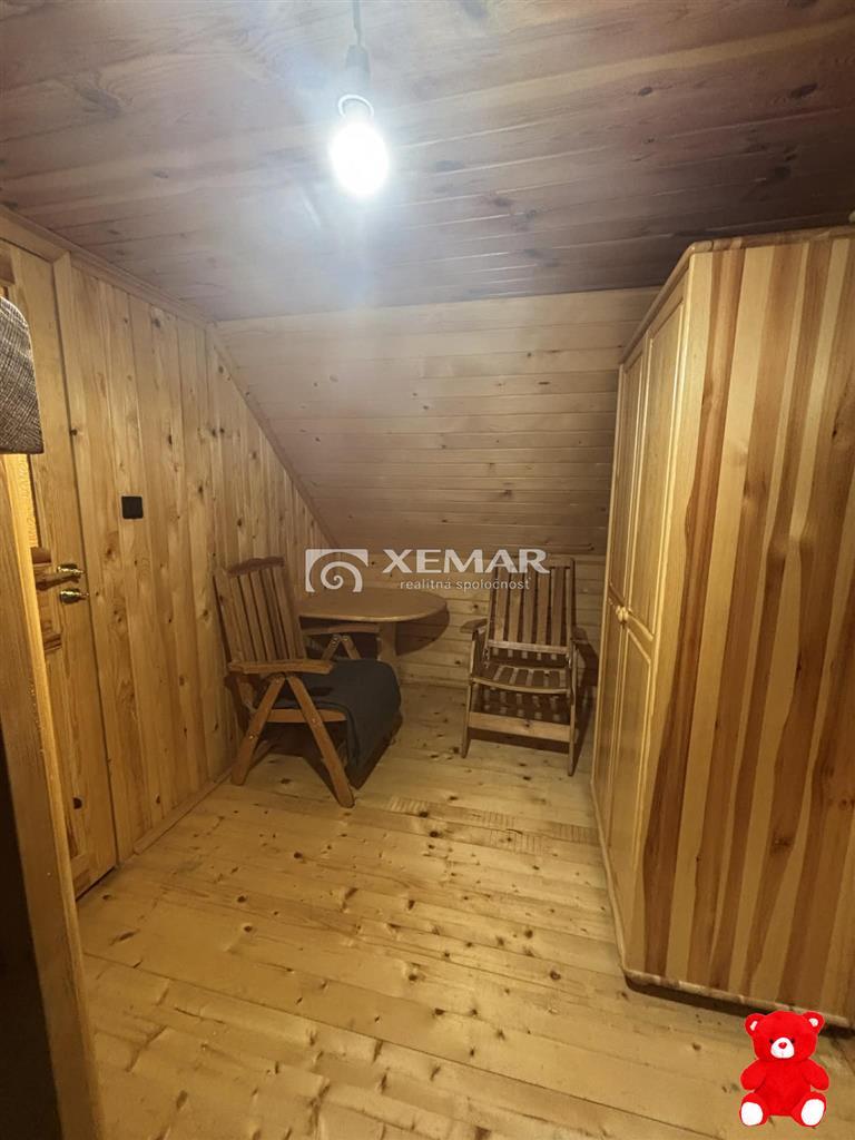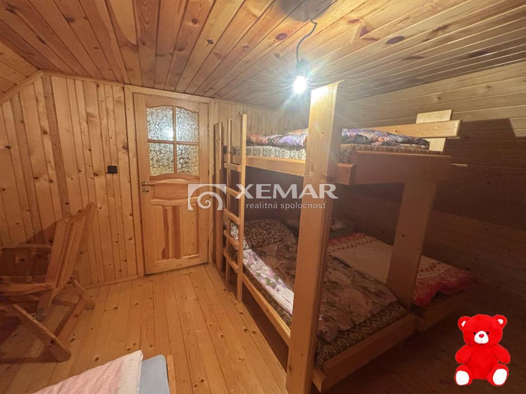 XEMAR (emanuel.nota@xemar.sk, 0948 099 191) ponúka na predaj chatu v obci Belá časť Belá -Zlieň. Pozemok s rozlohou 1367m 2 je mierne svahovitý s vytvorenými rovnými plošinami . Na pozemku je chata so zastavanou plochou cca 60m2. Dispozíciu chaty tvoria veľká spoločenská miestnosť s kuchyňou a kachľovou pecou. Na poschodí sú dve samostatné izby. samostatným vchodom na terase sa vstupuje do kúpeľne. Na pozemku sa nachádza dreváreň, altánok, suché WC. Chata má funkčnú elektrickú prípojku, vodovodnú prípojku (voda z vlastného vrtu) a odpad je riešený žumpou. Prístup k chate je po asfaltovej ceste posledných 100 m spevnená cesta a celý pozemok je oplotený. Chata môže slúžiť na trvalé alebo sezónne ubytovanie. Najväčšou výhodou tejto ponuky je stav nehnuteľnosti, vysporiadaný pozemok, elektrická a vodovodná prípojka a primeraná cena.V cene ponúkanej nehnuteľnosti je aj kompletný právny a hypotekárny servis.