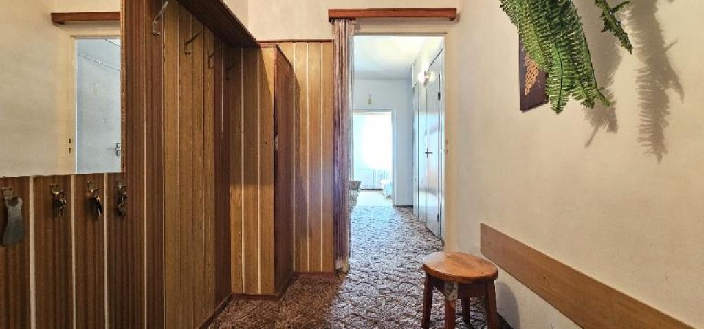 Byt juhozápadnej orientácie pozostáva z 2 nepriechodných spální a prechodnej obývacej izby s výstupom na balkón, priestrannej predsiene, chodby, samostatnej toalety a kúpeľne s vaňou. Byt má jedinečnú dispozíciu s vnútorným okruhom okolo jadra, s viacerými alternatívami ako byt zrekonštruovať. Byt je v pôvodnom stave s výnimkou nových plastových okien a balkónových dverí.