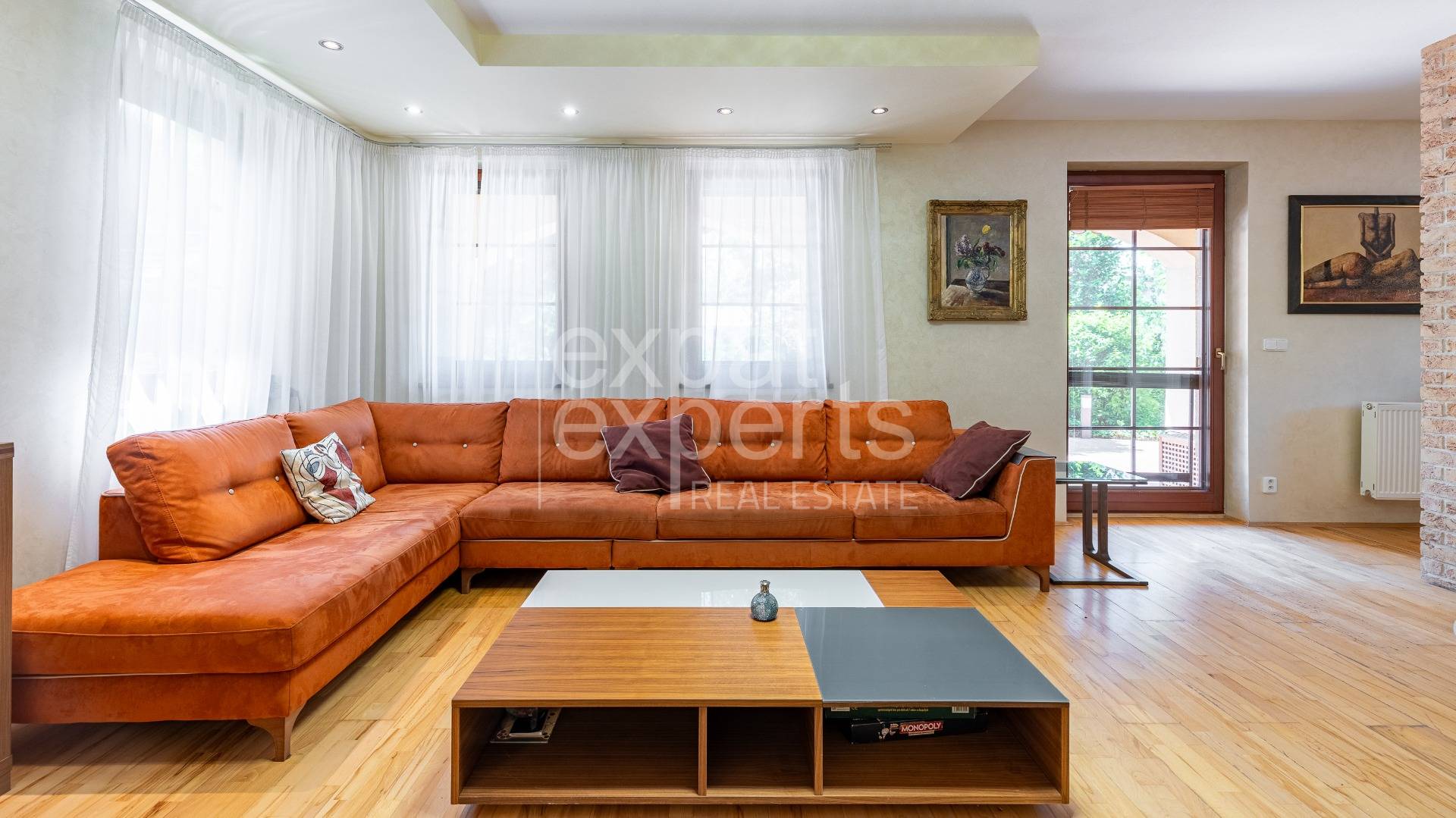Dom ladený do toskánského štýlu, kvalitný taliansky nábytok; nábytok na mieru, sedacia súprava z brúsenej kože,