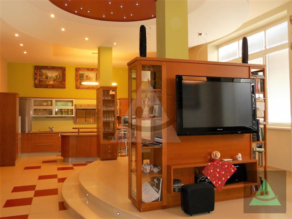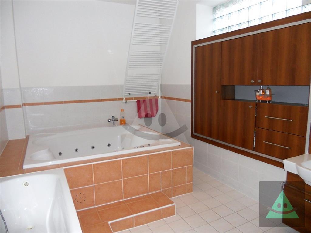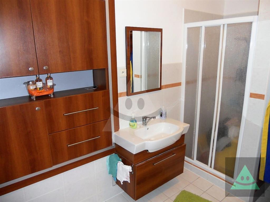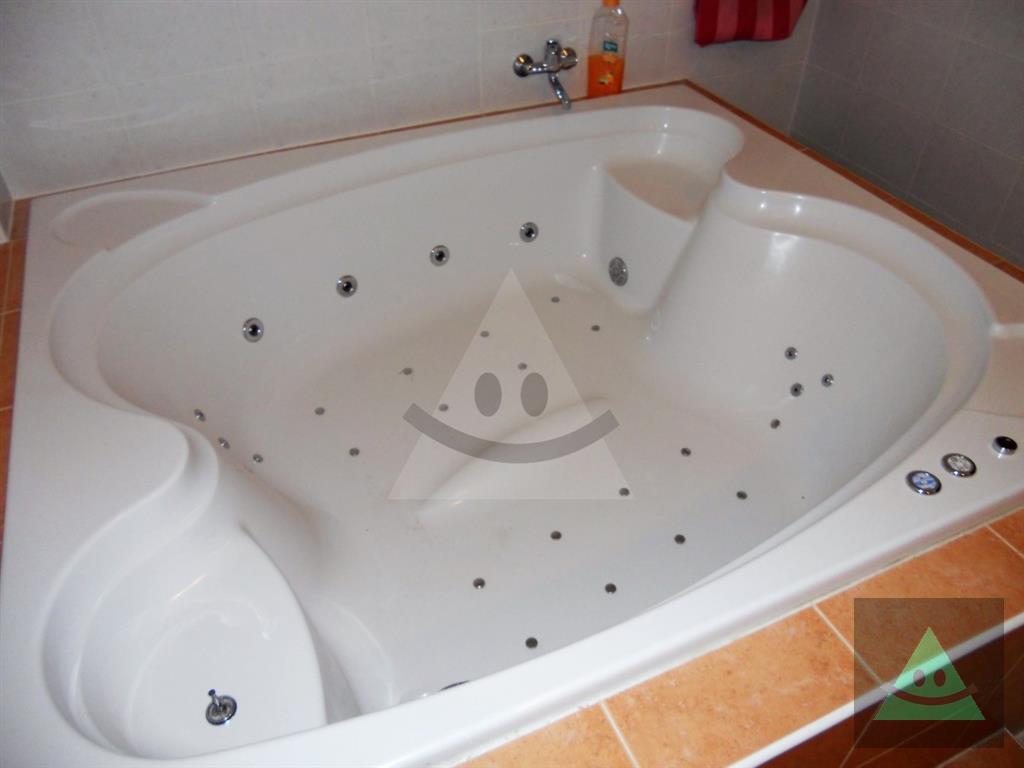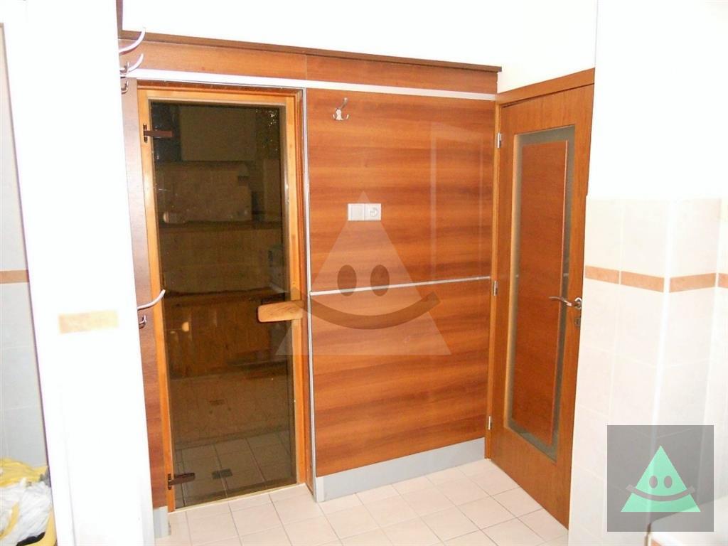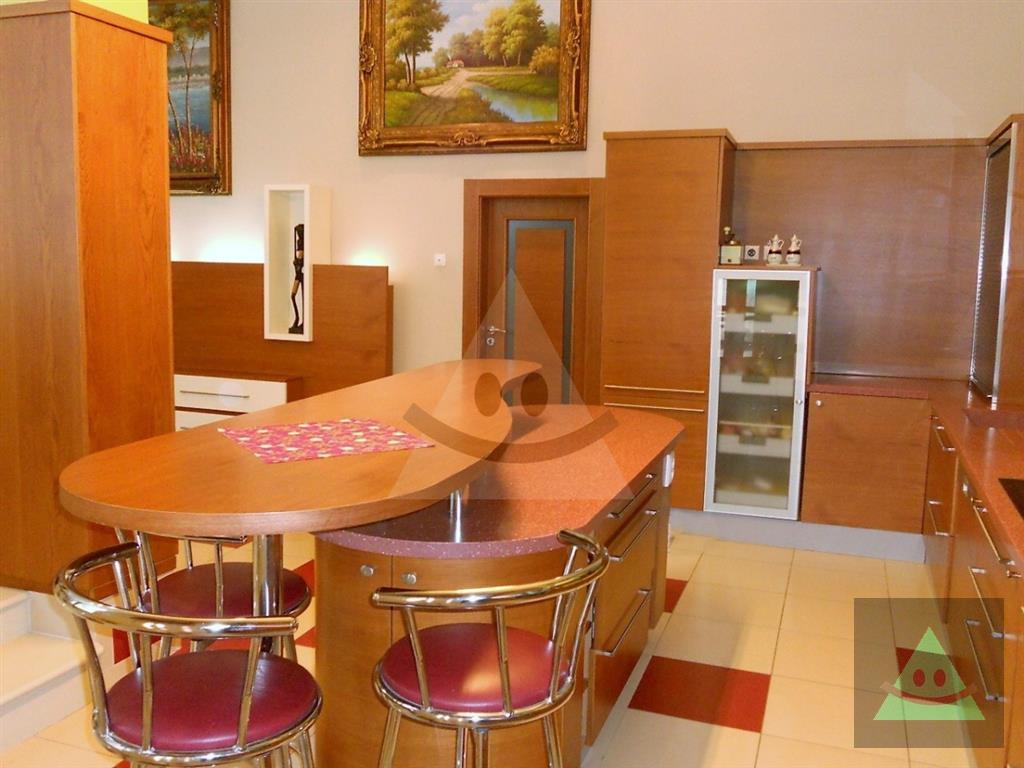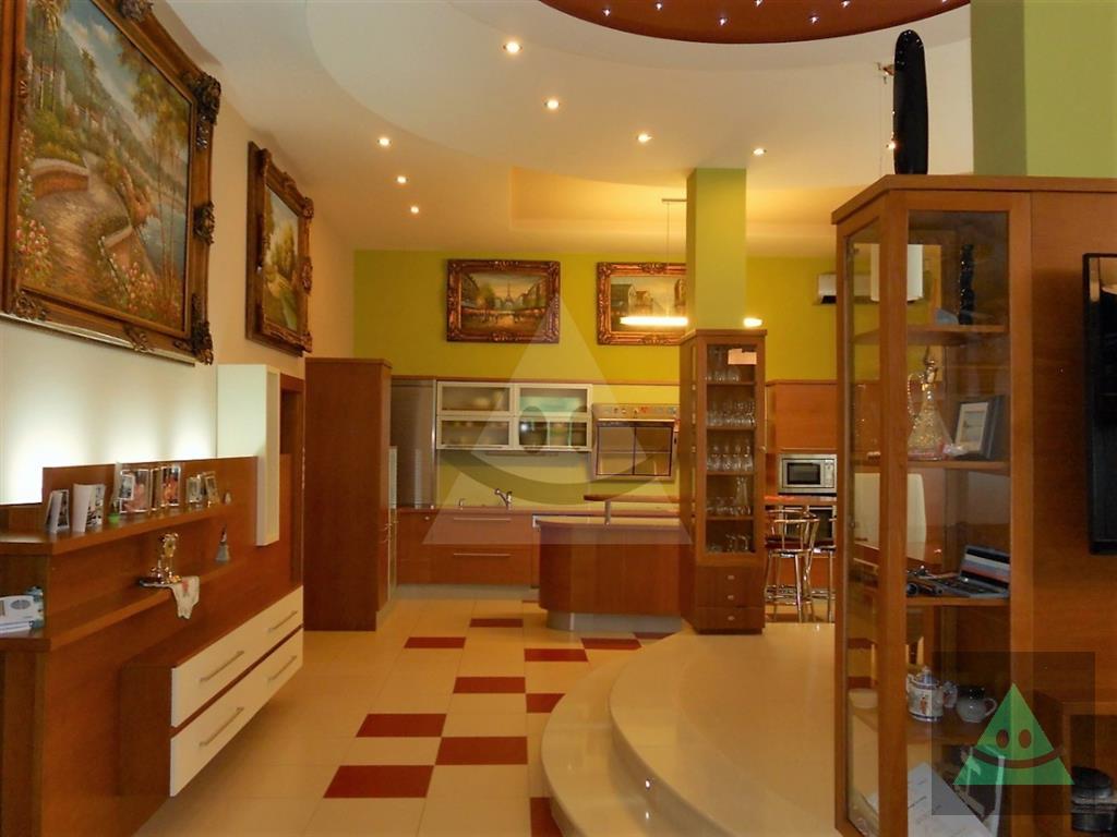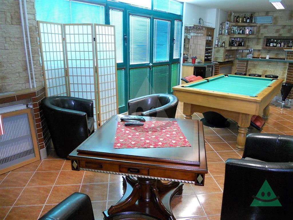 Celková úžitková plocha je 205 m2 x 2, spolu 410 m2. Na prízemí sa nachádza vchod do rodinného domu. Po prejdení sa ocitneme v predsieni. Z nej vedú dvere do obytnej časti na prízemí, schody do podkrovia, šatníka s WC, hosťovského WC a do " pánskej časti " domu, kde sa nachádza barový pult, biliardový a kartársky stôl. Po prejdení do obytnej časti domu na prízemí sa ocitneme v priestrannej miestnosti, v ktorej sú sektorovo oddelená obývačka, jedáleň a kuchyňa s barovým ostrovčekom. Vedľa je hneď miestnosť mini wellnessu s jednou masážnou vaňou, obyčajnou vaňou, sprchovým kútom a fínskou saunou pre 8 až 10 osôb. Ďalšou miestnosťou v tejto časti domu je izba, momentálne zariadená ako detská izba. V podkrovnej časti sa nachádzajú okrem kúpeľne ďalšie miestnosti, ktoré slúžia jednak ako hosťovská izba a druhá ako priestranná detská izba. Okná na dome sú hliníkové. Strecha je šindľová a odizolovaná niekoľkými vrstvami, strop je sádrokartonový. Rekonštrukcia bola v roku 2014. Podlahy sú mramorové, keramické a plávajúca podlaha. Kúrenie je zabezpečené kombinovane podlahovým kúrením - vodným, pevným palivom v kozube, z ktorého vedú prieduchy do ostatných izieb a v ktorých sú ventilátory. Teplá voda je zabezpečená jednak plynovým kotlom ako aj elektrickým bojlerom. Žiarivky sú všade LED úsporné.