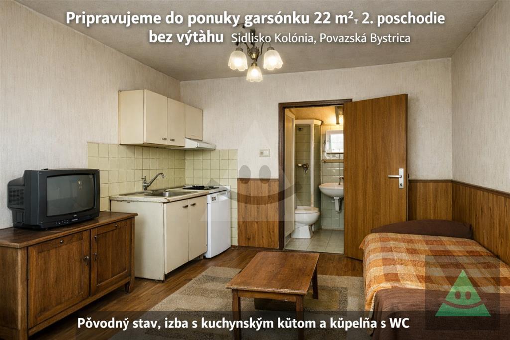 Pripravujeme do ponuky garsónku/slobodárku o výmere 22 m2, nachádzajúcu sa na 2. poschodí bytového domu bez výťahu na sídlisku Kolonia v Považskej Bystrici.