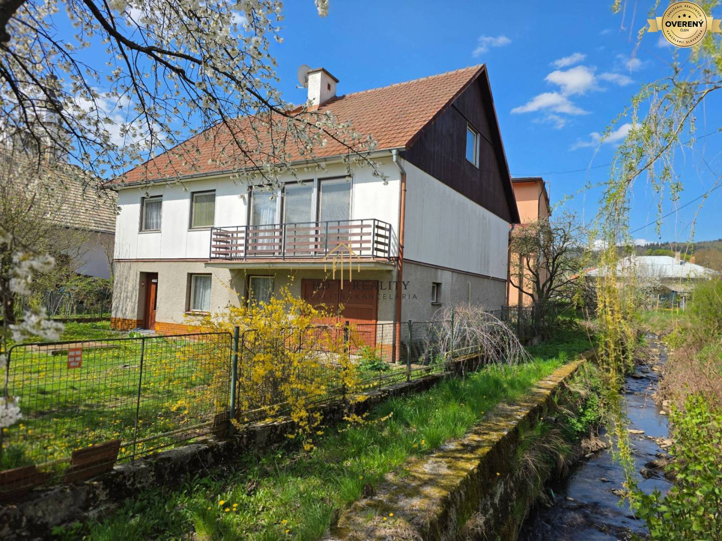 Dom sa nachádza na slnečnom pozemku pri potoku, ktorý vytvára príjemnú a pokojnú atmosféru bývania.