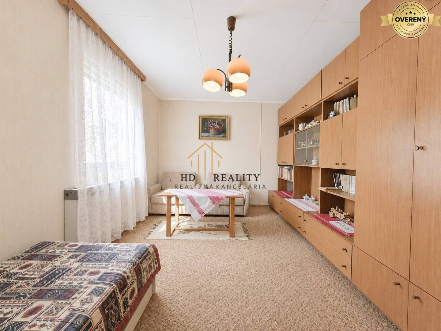• obývacia izba – priestranná, s tromi rovnakými oknami