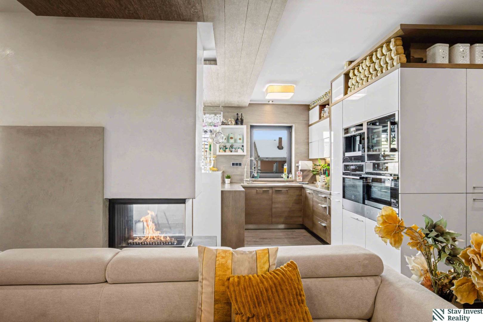✔ Otvorená obývačka s kuchyňou a terasou – centrum rodinného života