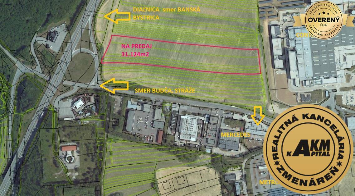 Nenechajte si ujsť túto unikátnu príležitosť investovať do budúcnosti. Bez ohľadu na to, či plánujete vytvoriť obchodné centrum alebo priemyselnú zónu, tento pozemok ponúka všetko, čo potrebujete pre úspešný projekt. Kúpna cena dohodou. Zabezpečíme pre Vás vypracovanie kvalitných kúpnych zmlúv, dohodneme znalecký posudok, vybavíme kataster, zabezpečíme odovzdanie nehnuteľnosti a prepis energií. V prípade potreby zabezpečíme pre Vás statický posudok, vypracovanie geometrických plánov, vypratanie nehnuteľnosti, právne poradenstvo. V prípade potreby v našej ZMENÁRNI Vám môžeme zameniť peniaze. Nájdete nás v kancelárií na A. Sládkovičovej 1 vo Zvolene OPROTI HLAVNEJ POŠTE a vedľa SLSP. Viac informácií na tel. čísle +421905985807, mail: laurova@akmkapital.sk.
