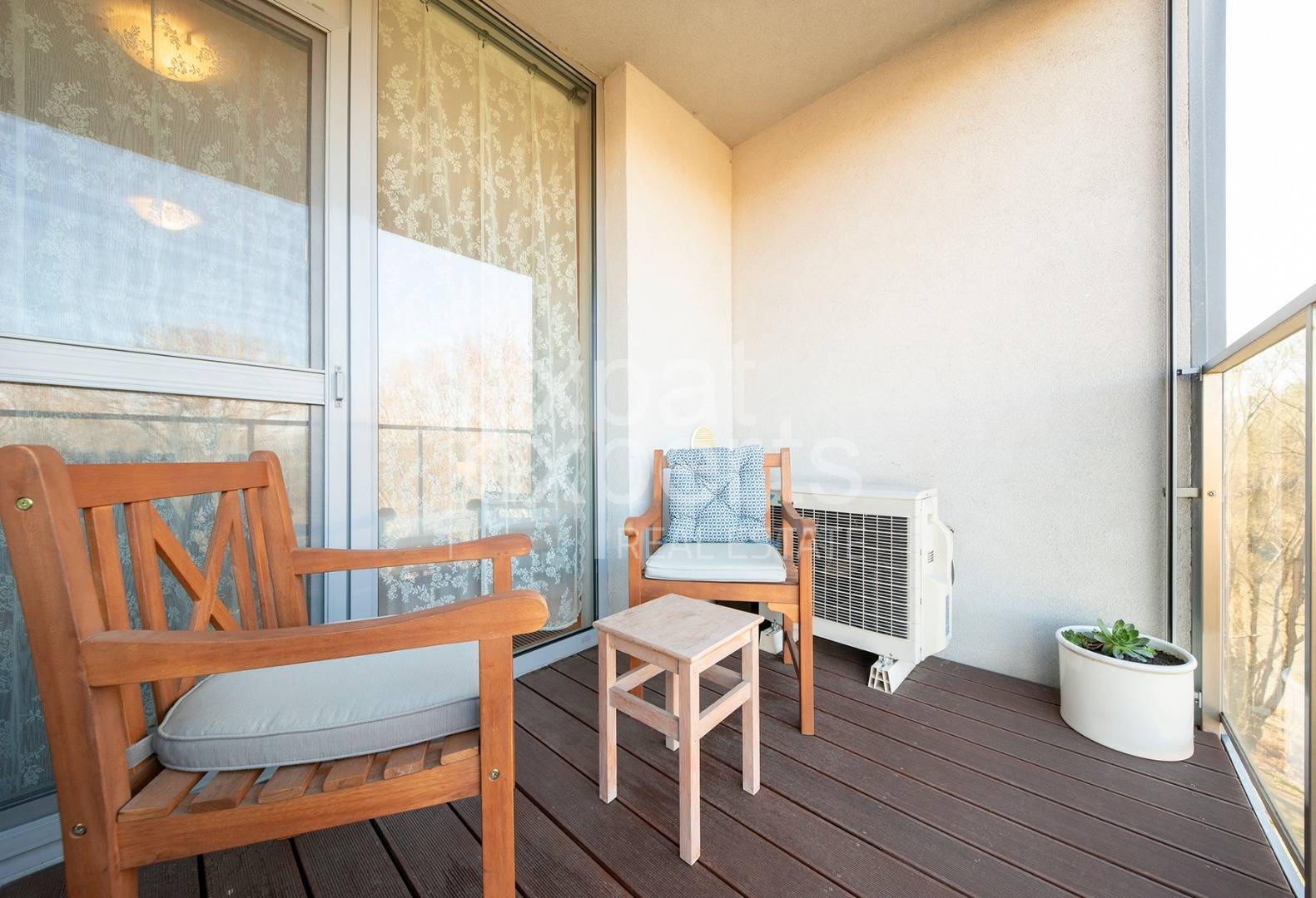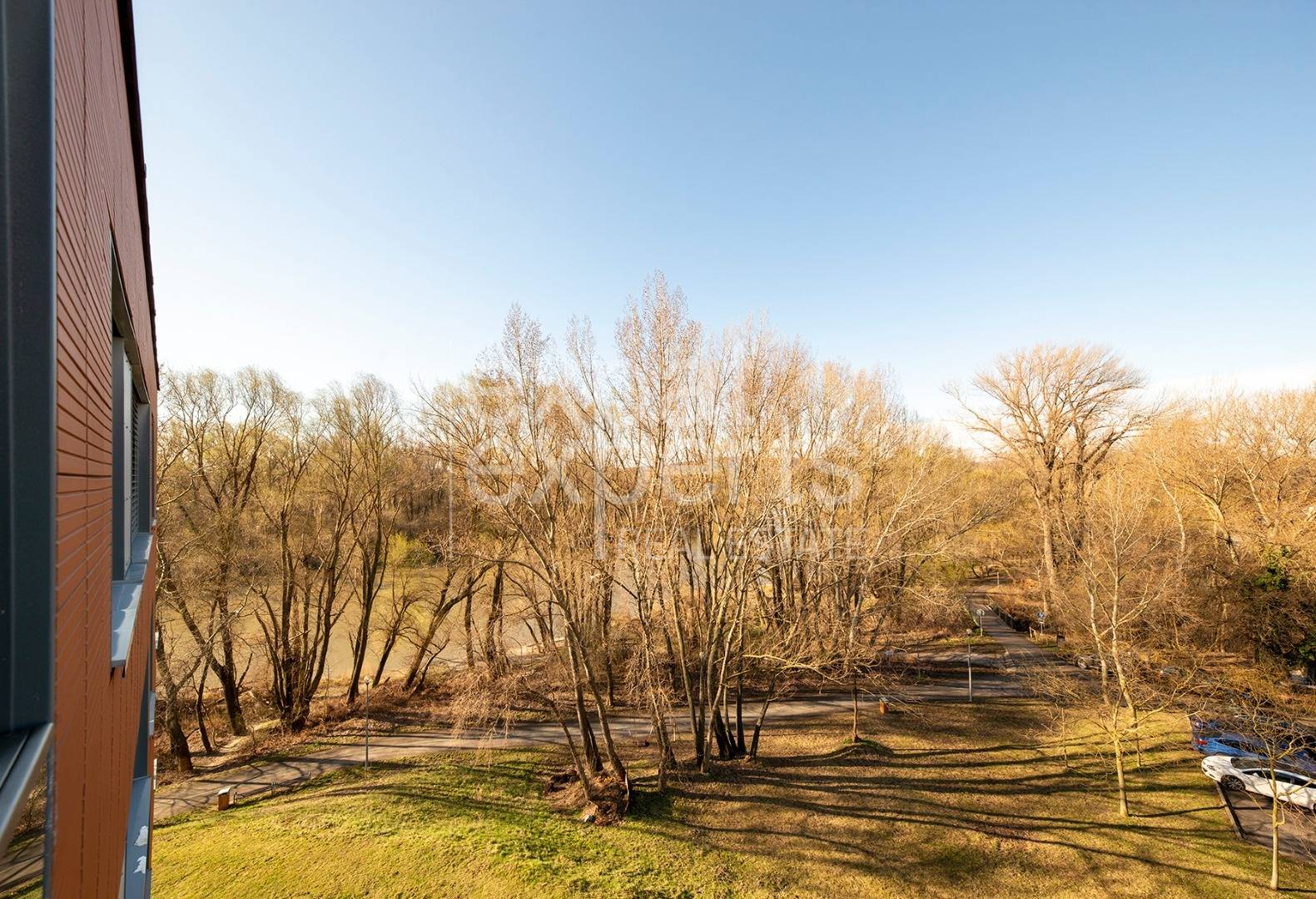 Byt je situovaný v lukratívnej, veľmi tichej lokalite priamo na brehu Karloveského ramena s výhľadom na vodu a les. Výhodou je špičková dostupnosť – okamžité napojenie na diaľnicu, blízkosti dve autobusové zastávky, bike sharing a scooter sharing terminal, vynikajúce možnosti športového vyžitia - cyklistická a bežecká promenáda pri Dunaji, tenisové kurty, viacero vodáckych klubov, karloveský športový klub, rybolov, udržiavaná Vodárenská záhrada BVS a Botanická záhrada.