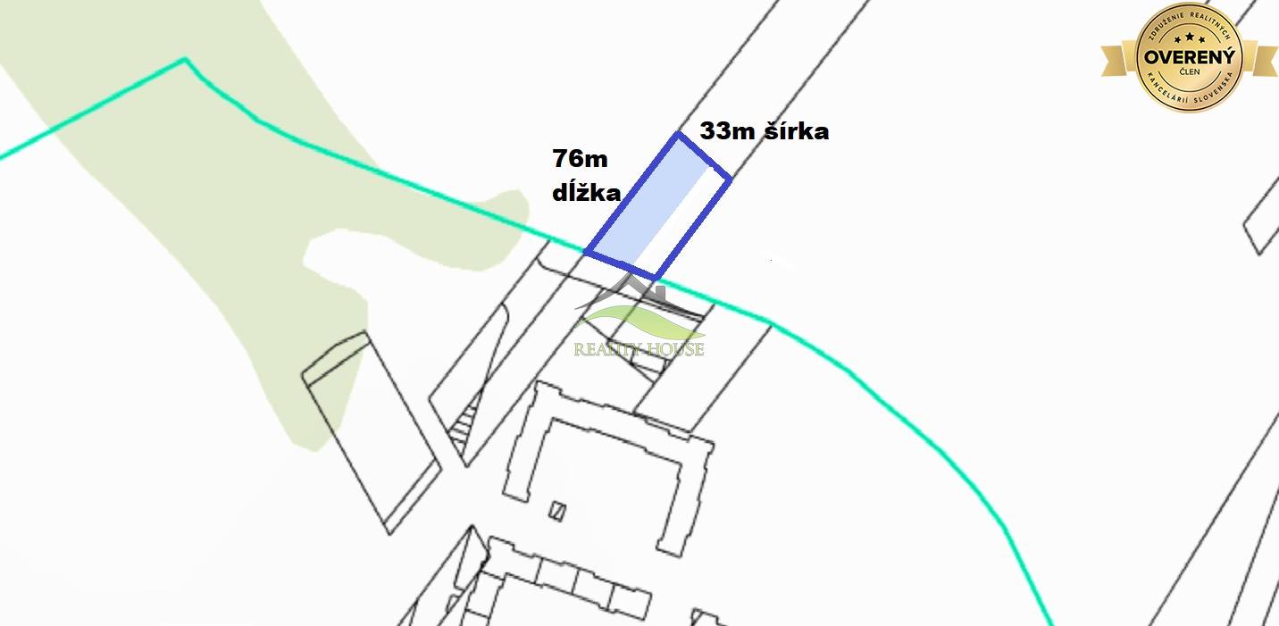 - celková rozloha pozemku je 1766 m2 ( predná šírka z cesty 33 m x dĺžka 76m- z toho 10m cesta)