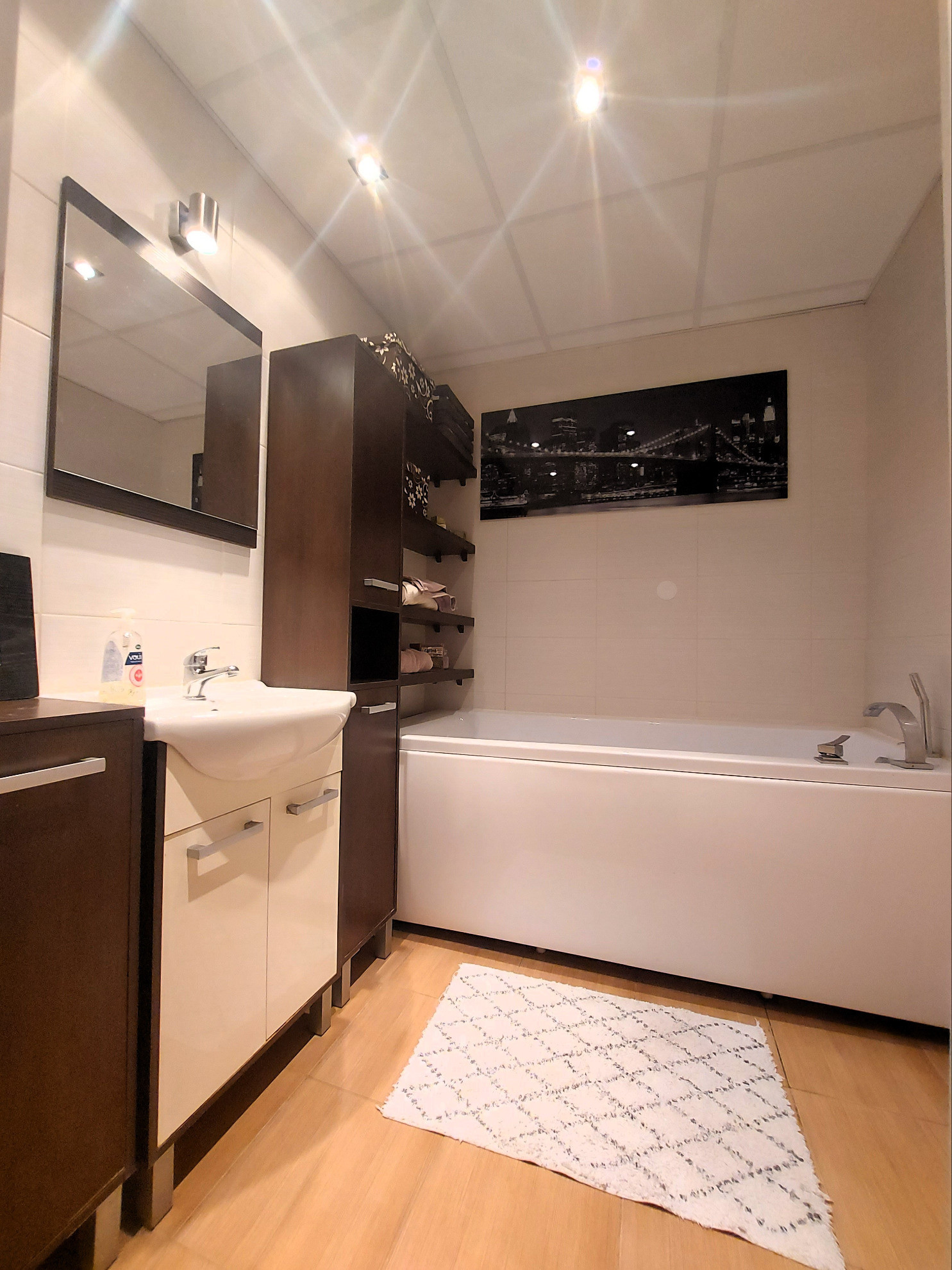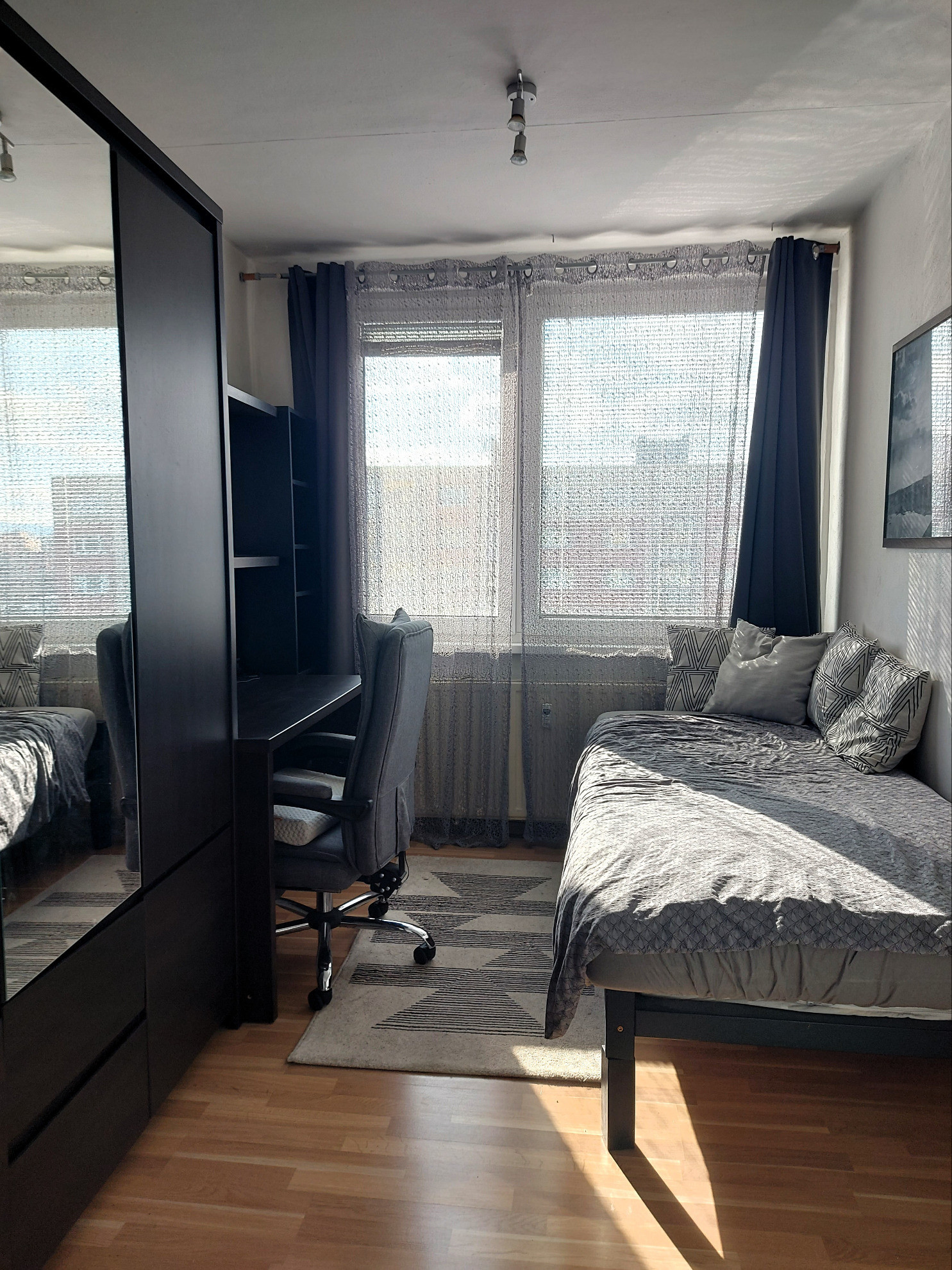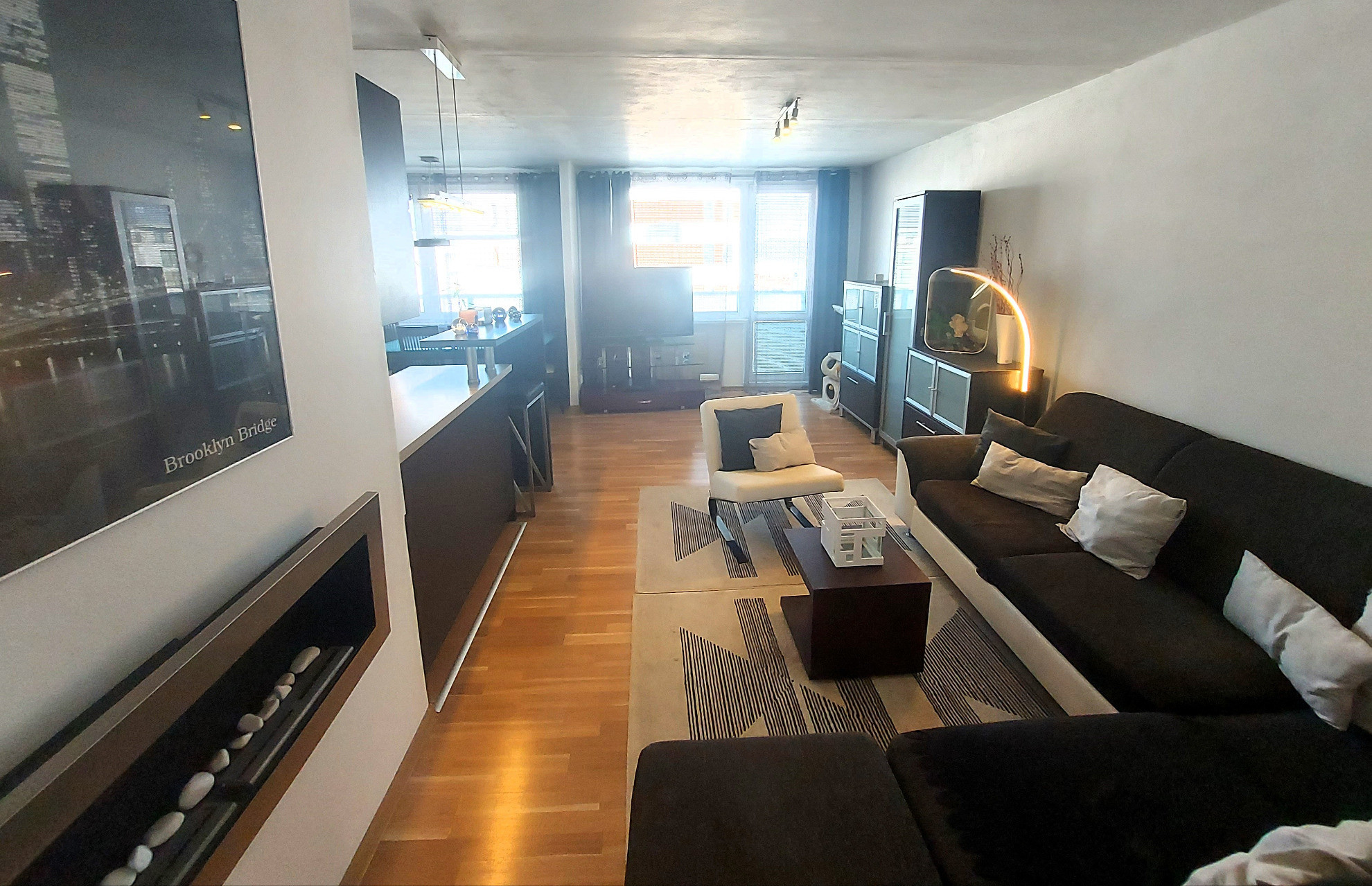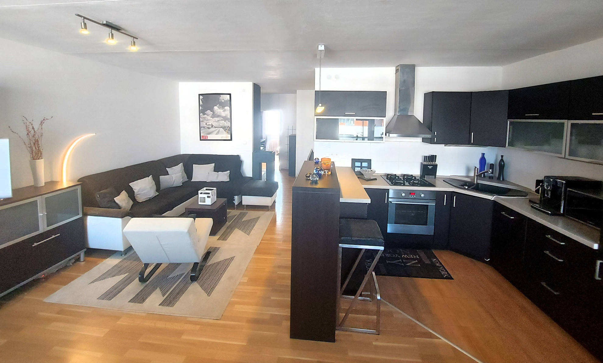 Slnečný byt nachádzajúci sa na 7. poschodí bytového domu z 8., prešiel približne pred 10 rokmi rekonštruciou a dispozičnou zmenou - kuchynská linka na mieru so vstavanými spotrebičmi, otvorená/prepojená kuchyňa s obývacou izbou s východom na loggiu, murované jadro (samostatná toaleta), vymenené laminátové podlahy v izbách a dlažbou v časti kuchynskej linky, bezpečnostné vchodové dvere.