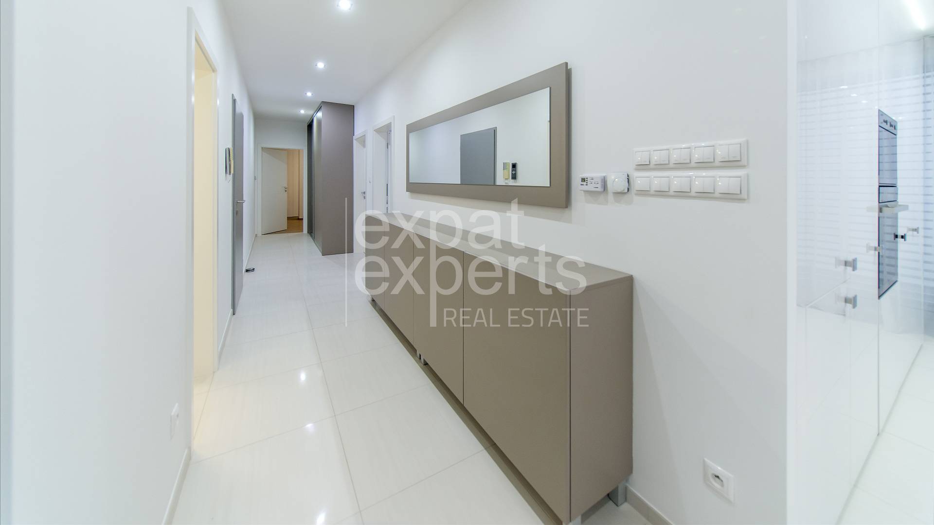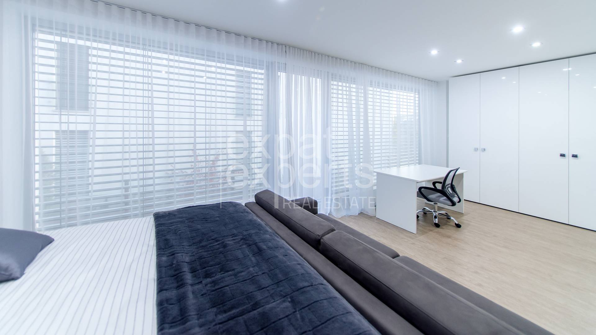 Byt je klimatizovaný, nachádza sa v novostavbe; prenajíma sa zariadený a je vybavený elektrospotrebičmi; podlahové vykurovanie, vstavané skrine, hliníkové okná s externými žalúziami, byt má vlastný bezpečnostný systém.