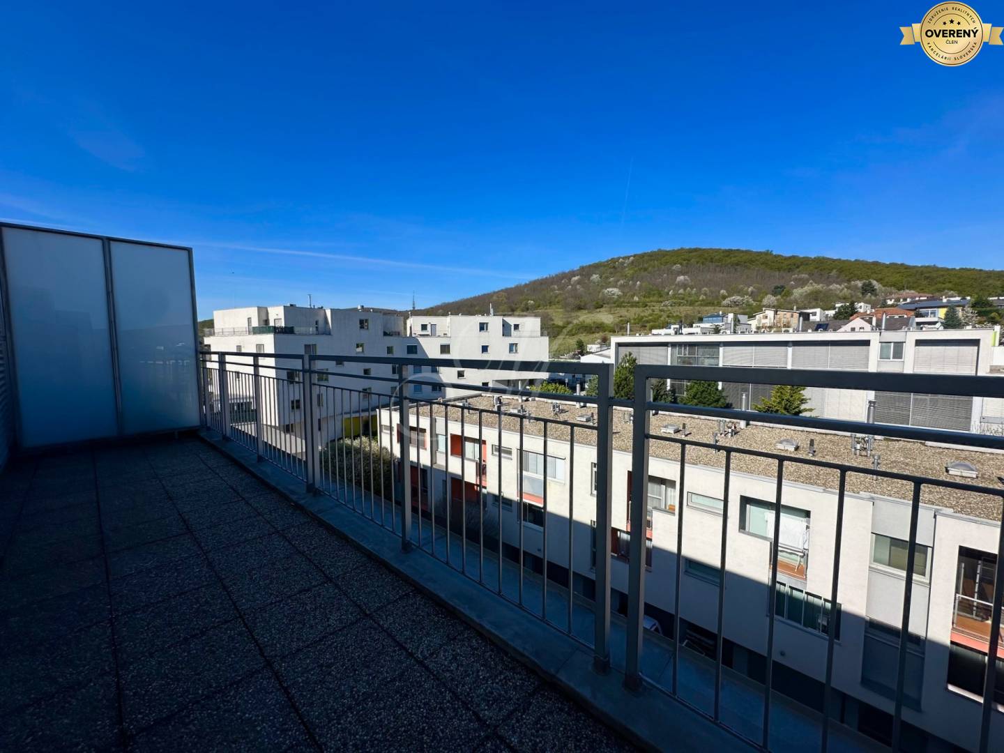 Súčasťou bytu je terasa o výmere 43 m², ktorá poskytuje príjemný priestor na oddych. Byt disponuje krbom, ktorý dotvára atmosféru bývania. Byt sa prenajíma čiastočne zariadený.