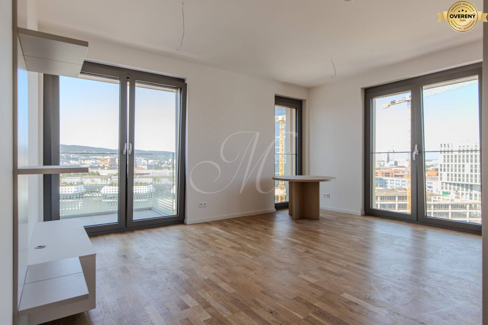 Kompletne zariadený rohový 3-izbový apartmán s výmerou cca 68 m² sa nachádza na 13. poschodí novostavby Metropolis a ponúka výhľad na OC Nivy, Kolibu a Dunaj.