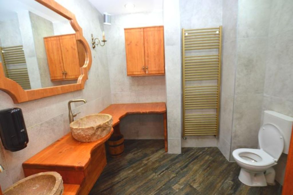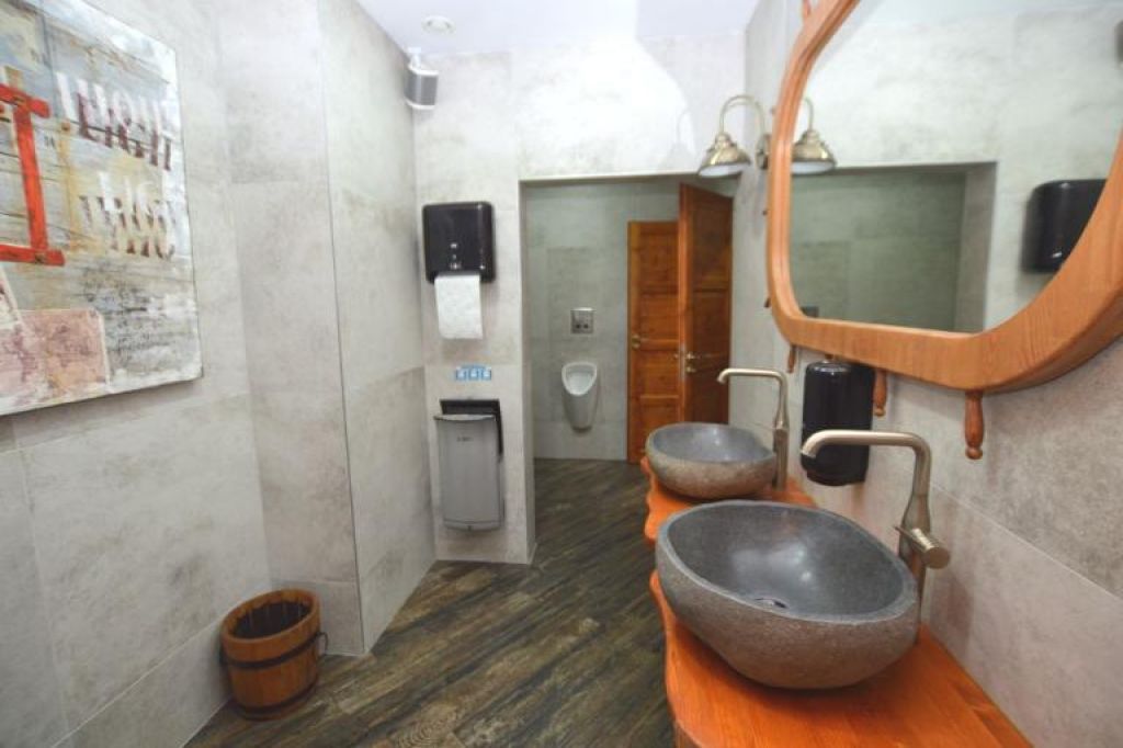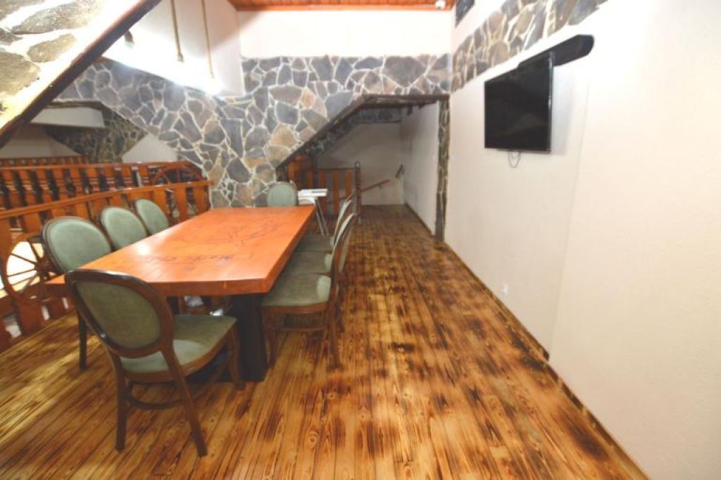 Reštaurácia je rozdelená na viacero časti: priestor pre fajčiarov, priestor pre nefajčiarov, bar, sklad, WC pre pánov (3pisoáre, 2x miestnosť s WC), WC pre ženy a deti, schodisko, na poschodí je priestor rozdelený na 3 časti (väčšie sedenia).