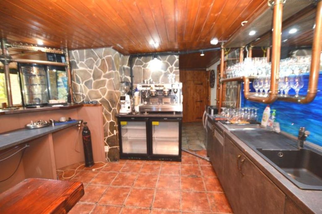 Vybavenie kuchyne: 2x 500l mrazák, 1y 500l chladnička, veľký elektrický sporák, 2x veľký digestor, 3x drez na riad, 2x fritéza, 1x ryžovar, 1x rúra, 1y umývačka riadu, 1x gril, regále, mlynec na mäso, veľký kávovar, vákuovačka, výrobnik ľadu 5x chladnička na nápoje, chladnička na víno, vitrína na zákusky, 4x ohrievací box na jedlo , výčapný pult, displej na kasu, taniere, poháre, hrnce, príbory, kuchynské skrinky, police, drevené stoly, stoličky, sedenia, barové stoly, barové stoličky a terasové stoly a stoličky.