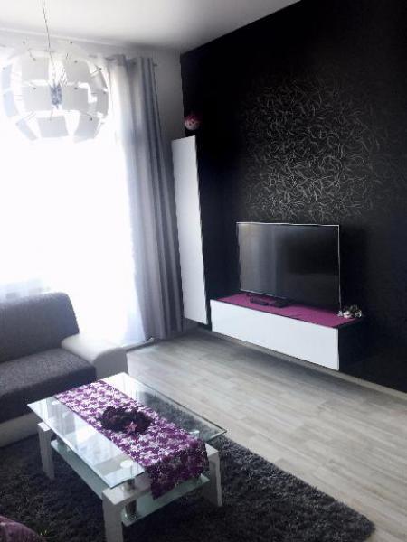Layout and equipment: In the entrance hall there is mirrored cabinet and modern shelves. The entrance door is equipped with a knob on the inside - flexible and secure solution. The bathroom has a bath, toilet, washing machine and storage space. Spacious living room with sofa, coffee table, rug, wall and hanging obývačkovou stand for the TV. Fully equipped kitchen with backlight and modern appliances: dishwasher interior lighting function with Timelight - screening the remaining time on the floor, microwave, touch electric oven, induction hob, hood design, fridge and freezer. The kitchen is connected with living room, the living room is exit to the balcony. A separate bedroom includes a spacious rolldor (due to increased ceiling) and a double bed.