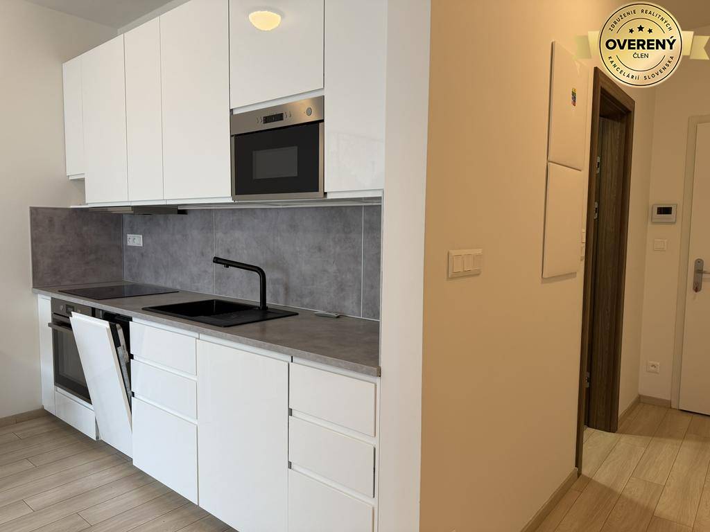 Byt je nový. Má modernú kuchynskú linku so spotrebičmi ( umývačka, elektrická. rúra, sklo-keramická platňa, chladnička s mrazničkou, mikovlnka).