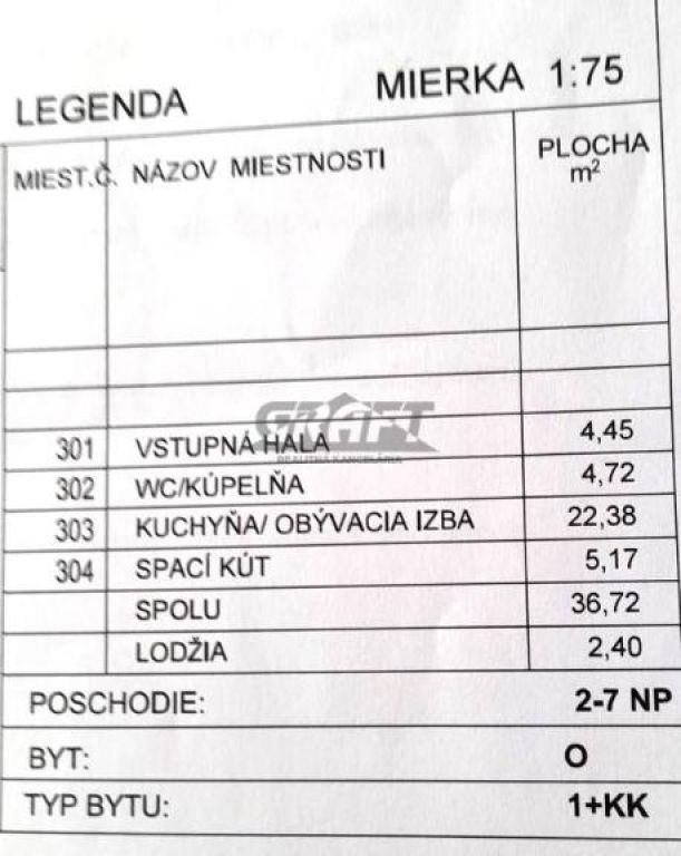 výmera bytu: 36,72 m²