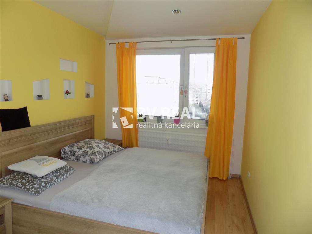 Orientácia bytu: Sever - spálňa, detská izba a Juh - kuchyňa s lodžiou a obývacia izba. Celková výmera bytu je 70 m2. Nachádza sa na 7. poschodí zatepleného bytového domu s výťahom. Súčasťou bytu je lodžia a pivnica. Výhoda: stredná sekcia, nízke náklady. Byt je voľný a predáva sa bez zariadenia. V prípade záujmu je možné zariadenie ponechať po dohode.