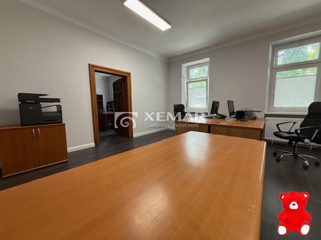 Xemar (monika.dianova@xemar.sk) alebo +421915962557 ponúka na predaj kancelárske priestory v rodinnom dome v lukratívnej časti mesta Banská Bystrica - Uhlisko. Objekt prešiel kompletnou rekonštrukciou a v posledných rokoch sa využíval ako obchodný a kancelársky priestor, ktorý však nebráni novému majiteľovi ho užívať ako vlastné bývanie s mnohými výhodami. Pár minút pešo od námestia mesta, bohatá občianska vybavenosť, škola, škôlka, obchody, blízko Terminál.Dom pozostáva z troch podlaží.1. Suterén - úžitková plocha 74m2, sú tu tri skladové miestnosti, v jednej z nich sa nachádza plynový kotol.2. Prízemie - úžitková plocha 119m2, zádverie, chodba/predsieň, kupelňa, točité schodisko do podkrovia a tri izby/kancelárie.3. Podkrovie - úžitková plocha 84m2, chodba priestranná miestnosť - kancelária, malá kuchynka a samostatné WC.Vo dvore sa nachádzajú dve železobetónové prefabrikované garáže (17,28 m2), postavené na betónovej doske. Ideálne pre parkovanie alebo ako úložný priestor.Vlastníctvo: súkromné.