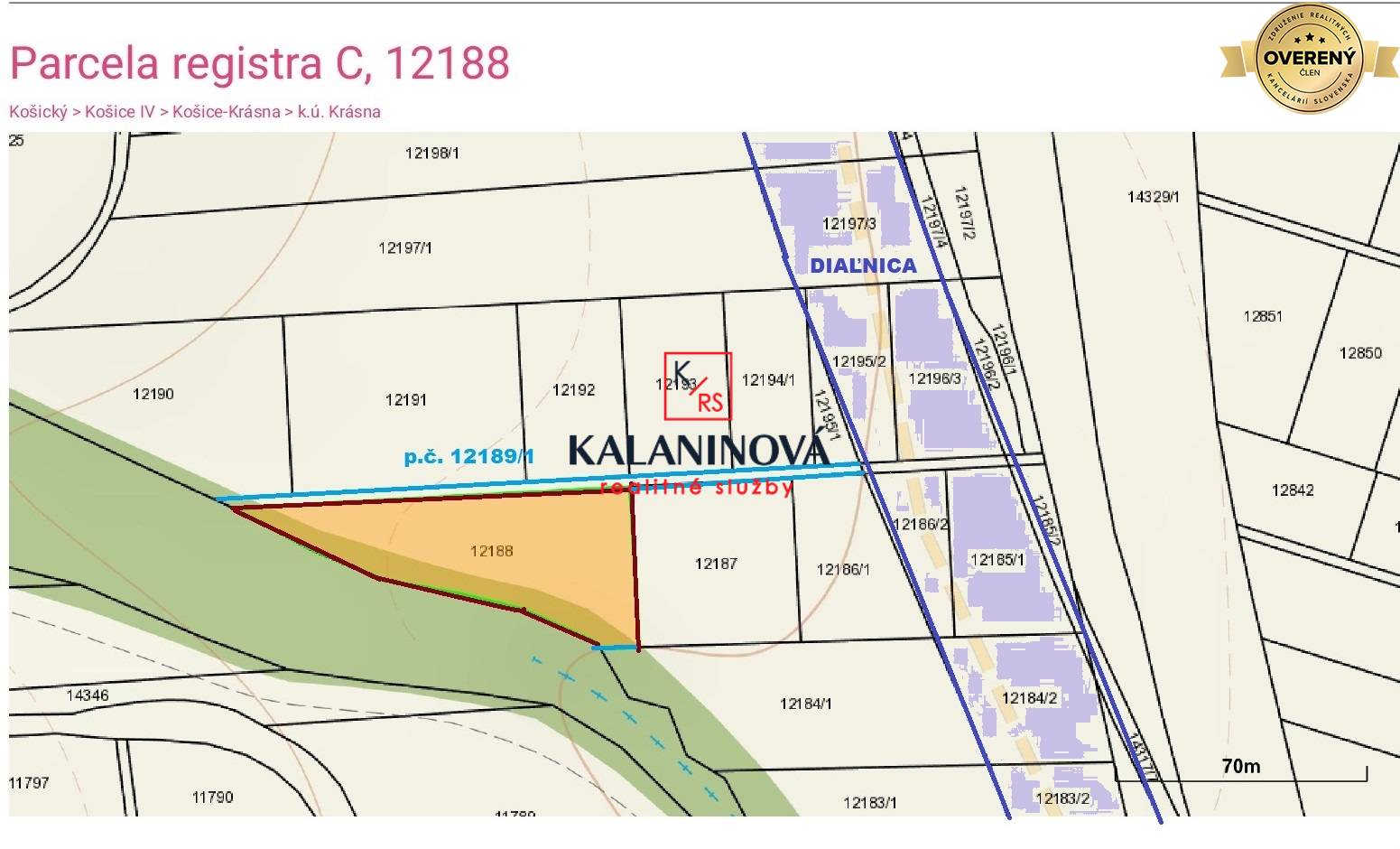 NA PREDAJ POZEMOK PARCELA REG. Č. 12188, KOŠICE - KRÁSNA