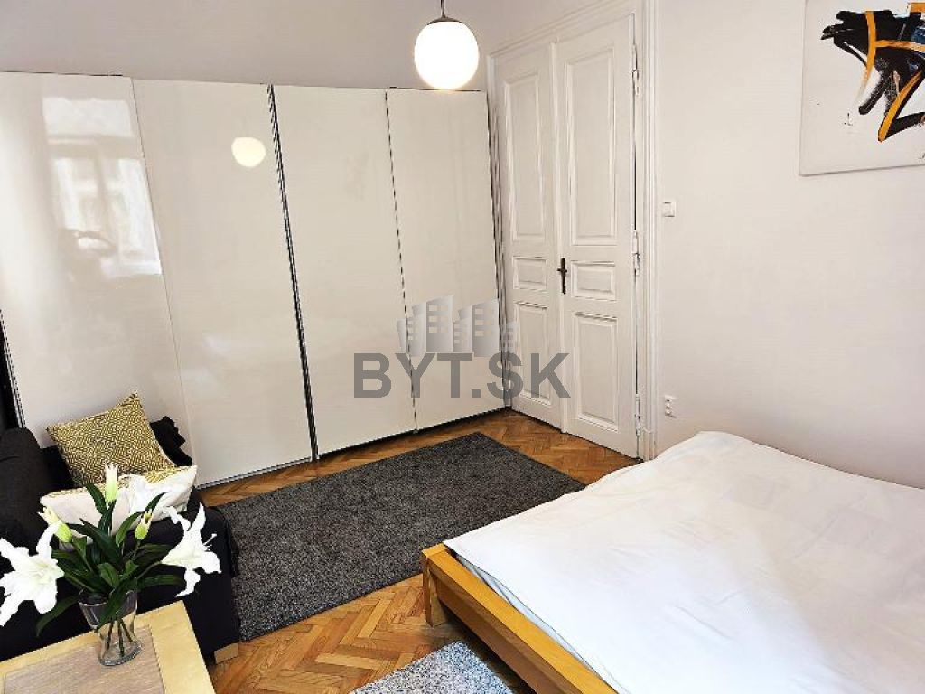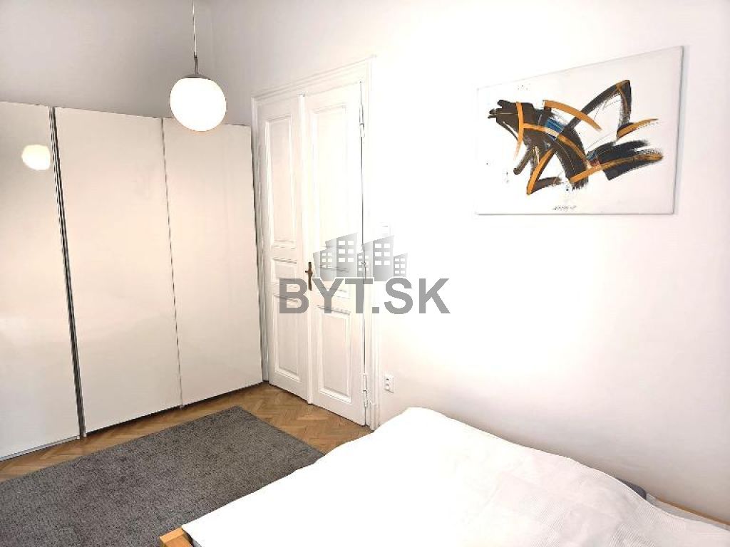 Byt je tichý - orientovaný do dvora, vysoké stropy ktoré dodávajú bytu vzdušnosť a eleganciu, je kompletne zariadený nábytkom a novými spotrebičmi, je tu vysoko rýchlostný internet, bezpečnosť – pancierové dvere.