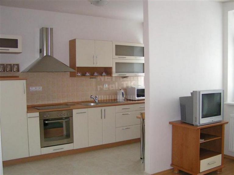 Kompletne zariadený byt. Obývačka prepojená s kuchyňou. Manželská posteľ v spáľni.