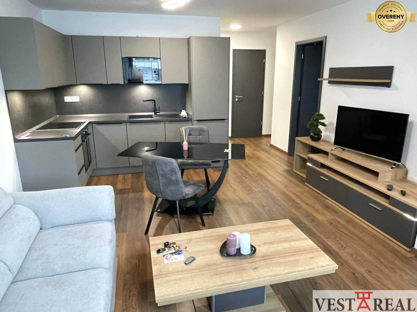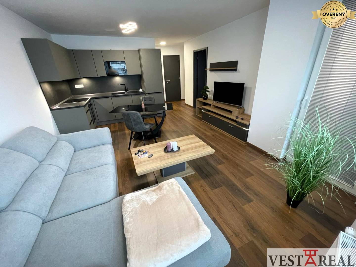 Na prenájom štýlovo a vkusne zariadený 2-izbový byt s lodžiou, situovaný v novostavbe bytového domu Arbória na 3. nadzemnom podlaží s výťahom na Novomestskej ulici v meste Trnava. Do bytu je bezbariérový prístup, dispozične pozostáva zo vstupnej chodby, komory, priestrannej obývacej izby prepojenej s kuchyňou, spálne, kúpeľne s vaňou a samostatným WC. Z obývacej miestnosti je výstup na lodžiu. K bytu prislúcha parkovacie miesto v podzemnej garáži. Celková výmera bytu je 56 m2.