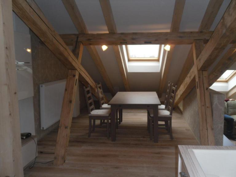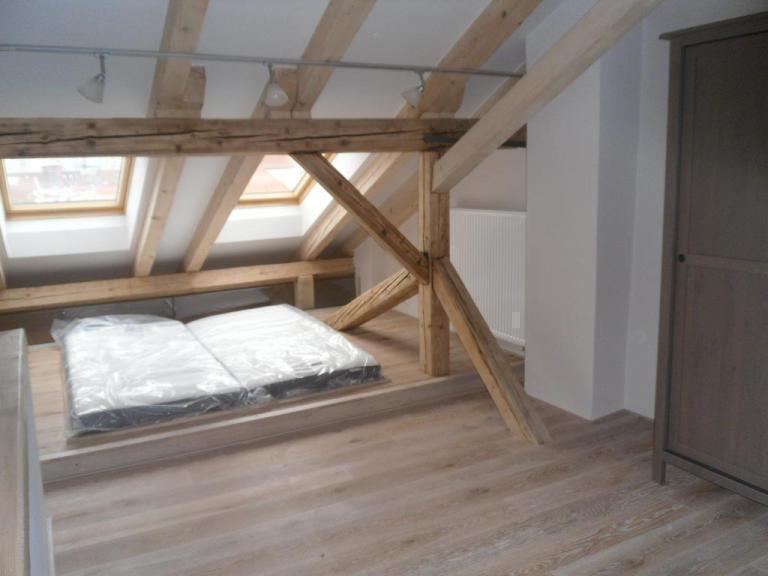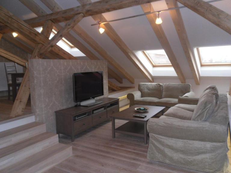 Na prenájom kompletne zrekonštruovaný, úplne nový 2,5 izbový byt v centre mesta na Hlavnej ulici, výmera 110m2, dispozične riešený ako mezonet kde sa nachádza spálňa a priestor na pracovňu, moderná kúpelňa, na prízemí bytu kompletne vybavená moderná kuchyňa so vstavanými spotrebičmi a jedálenskou časťou, priestranná, moderná kúpelňa, zariadená obývacia hala. Byt spĺňa nároky moderného, luxusného prenájmu s dôrazom na prírodný materiál drevo. K dispozícii aj susedný byt s výmerou 100m2 s podobnou dispozíciou a luxusným charakterom. Cena nájmu 1200€/mesiac plus média.