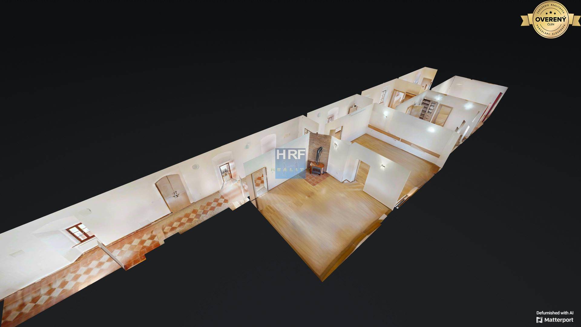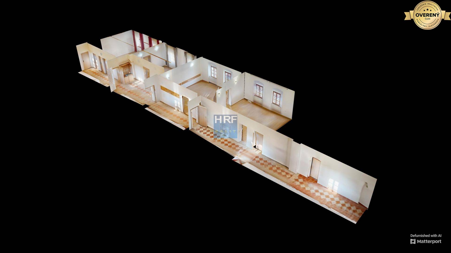 Pôdorys vo fotogalérii nie je kompletný (nie sú nasnímané ďalšie dve miestnosti).