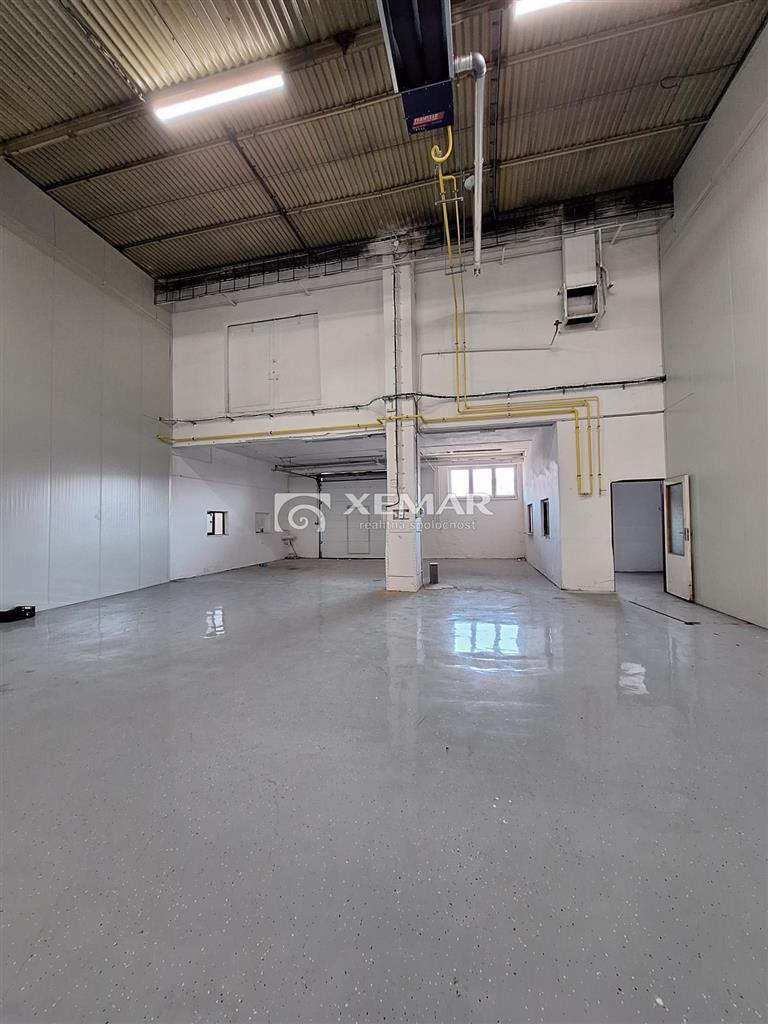 Skladové priestory od rozlohy 800 m2, využiteľné aj ako výrobné priestory. Priestory si prešli rekonštrukciou: nová kotolňa s kompletným novým vykurovaním, nové podlahy z liateho asfaltu, omietky, nová strešná krytina, rolovacie brány. K priestoru prislúcha aj kancelária. Pozdĺž budovy sa nachádza nakladacia rampa.