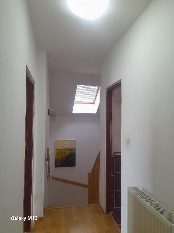 1.NP : vstupná chodba, kúpeľňa s toaletou, 3 samostatné izby ( 2 detské izby, 1 spálňa , 3 x roll-dor ), sklápacie schody do vysokého podkrovia.
